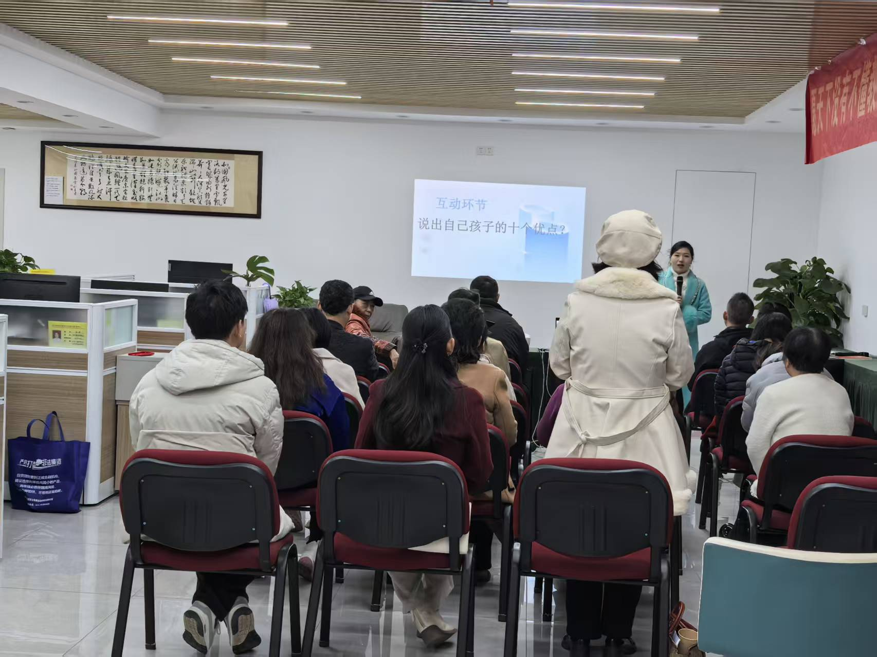 活动特邀家庭教育指导师田元琼老师主讲。她围绕亲子沟通、成长规律及常见育儿误区等内容,结合真实案例,深入浅出地分享科学育儿方法。现场互动积极,家长们踊跃提问,老师逐一耐心解答,并提供实用建议。
