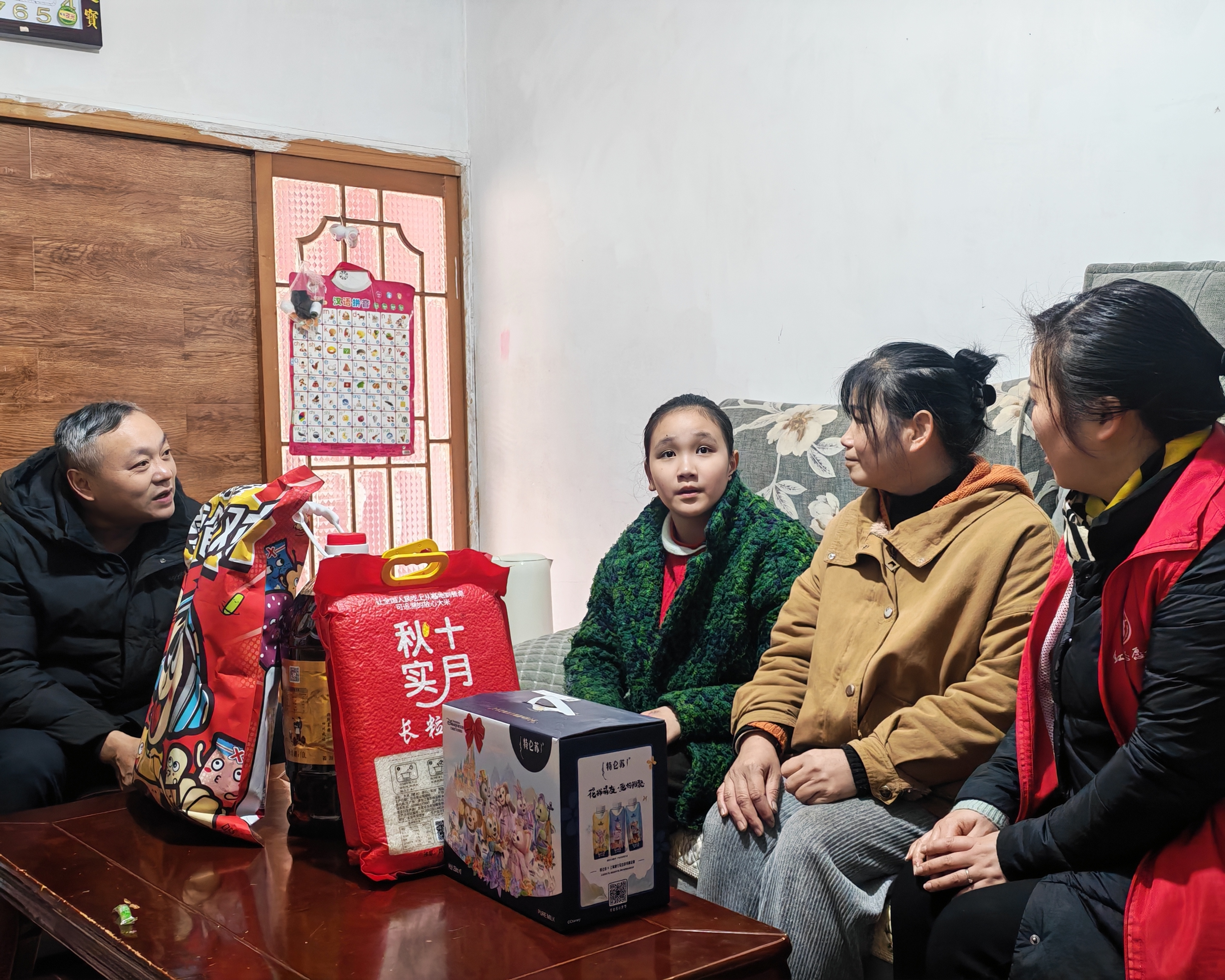 随后,慰问组为家庭送上了慰问金、粮油及新春礼包。杨妈妈感动地表示:“感谢党和政府的牵挂,这份温暖给了我们克服困难的勇气。”