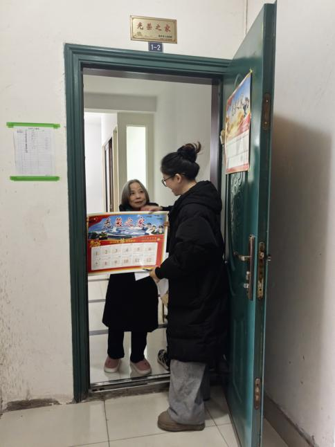 社区工作人员分组入户,深入退役军人家中,与他们亲切交谈,仔细询问身体、生活状况,聆听军旅故事与意见建议,并记录相关需求。走访中,工作人员将一幅幅印制精美、寓意吉祥的“光荣之家”年画送到退役军人手中,向他们致以诚挚的节日问候与崇高敬意。