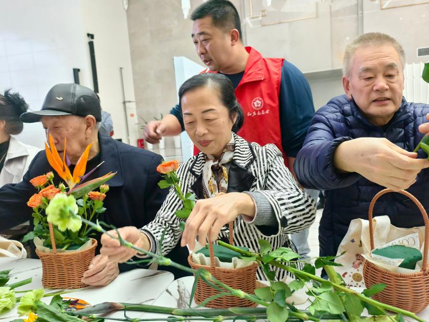 活动以移风易俗情景剧开场,引导居民摒弃焚烧陋习,树立绿色祭扫理念。随后,花艺志愿者带领大家制作手工花篮,居民们兴致高涨,在交流协作中完成一篮篮雅致的花艺作品,将文明祭扫融入指尖实践。