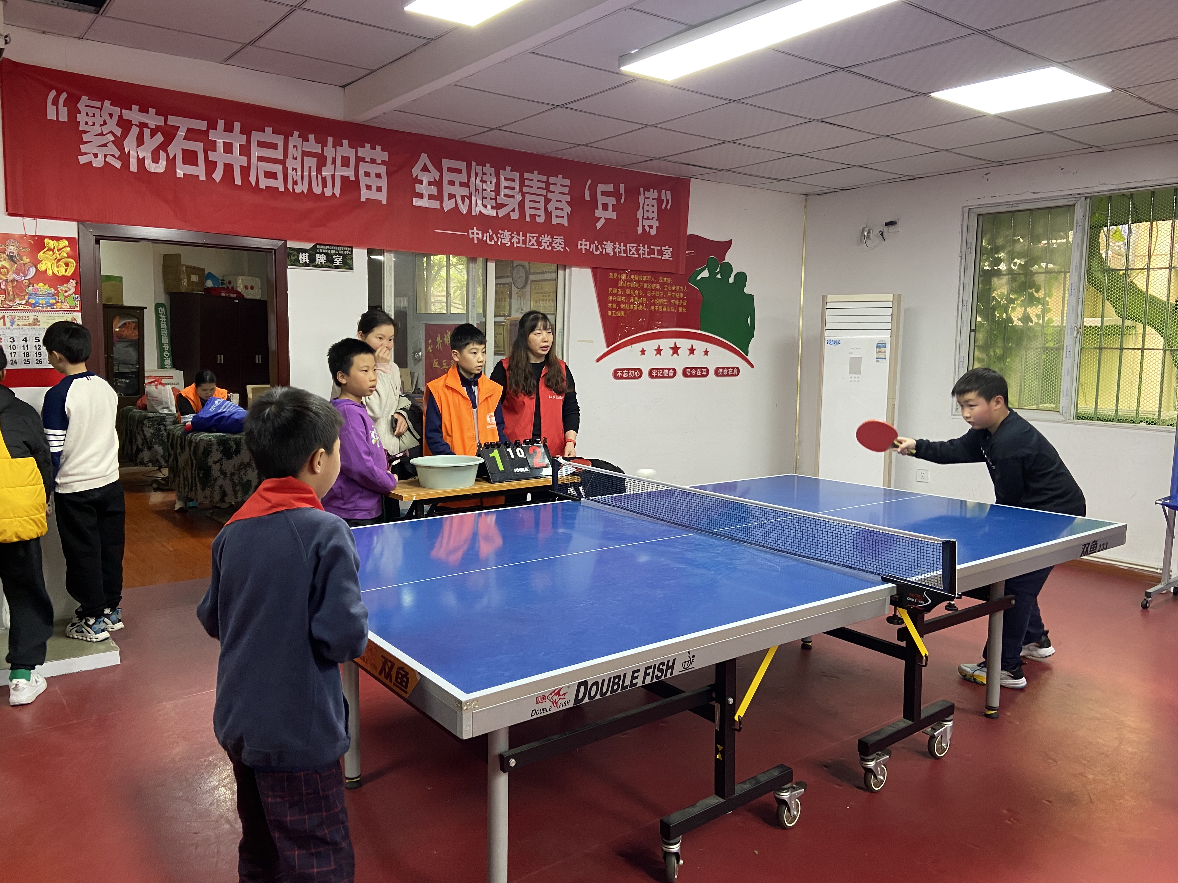 石井坡街道中心湾社区开展“繁花石井启航护苗全民健身青春‘乒’搏”青少年乒乓球比赛
