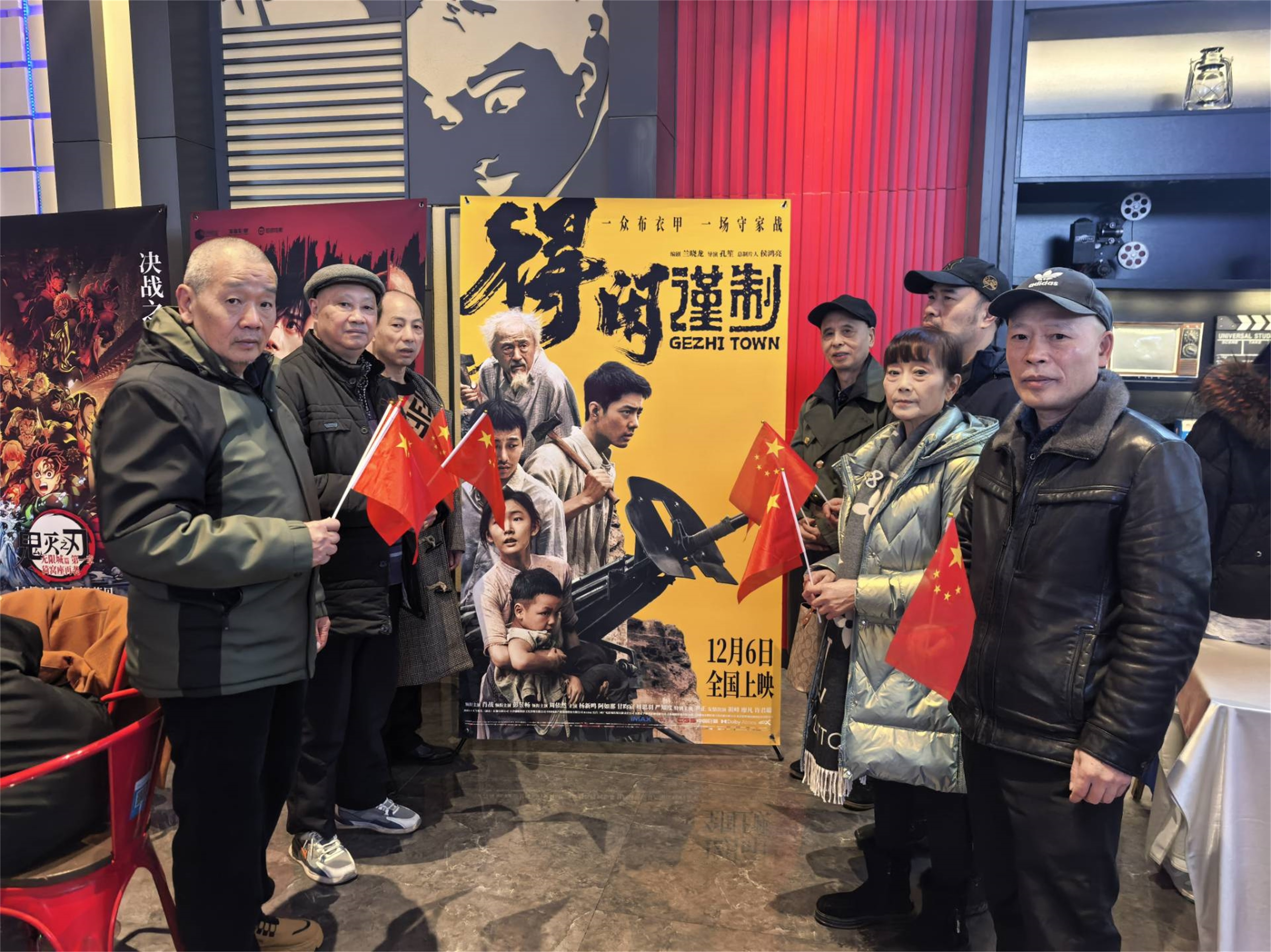 12月16日,石井坡街道和平山社区组织退役军人及家属共同观看抗战题材电影《得闲谨制》。