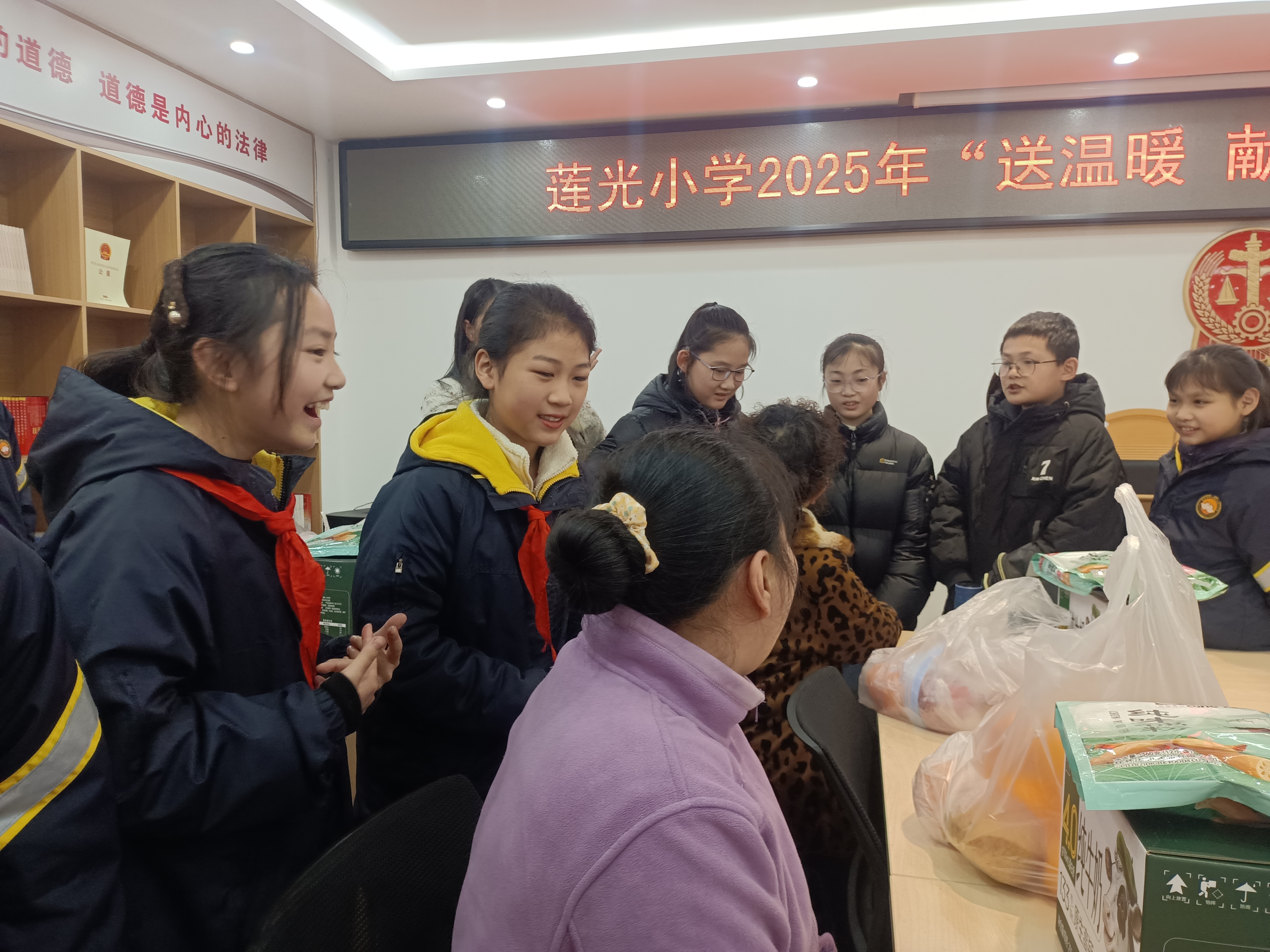 近日,莲光小学组织20余名学生志愿者走进中心湾社区,开展“送温暖献爱心”困难老人慰问活动。