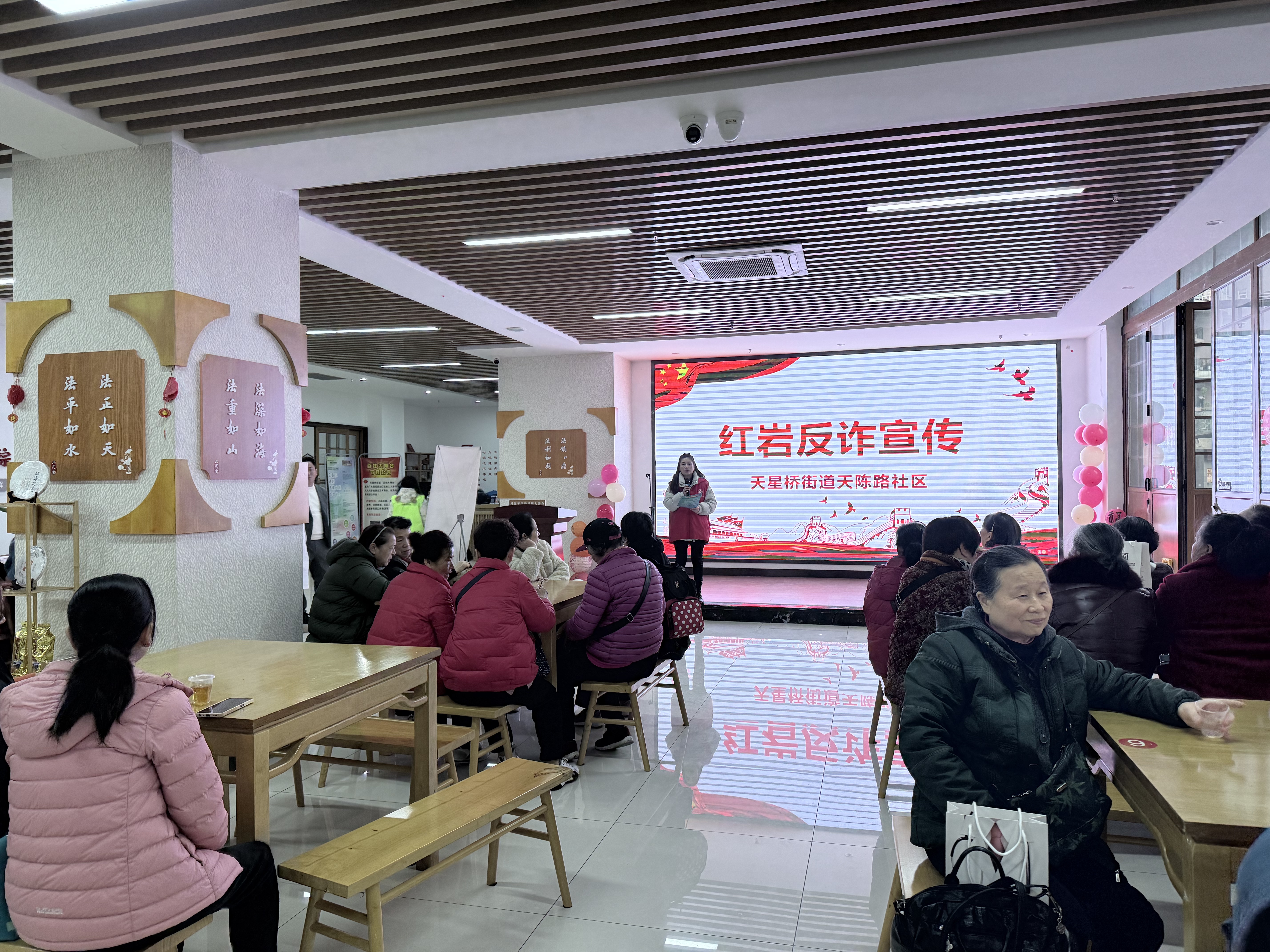 为进一步提升辖区居民防范电信网络诈骗的意识和能力,切实守护好人民群众的财产安全,营造全民反诈的浓厚氛围,1月19日,天星桥街道天陈路社区在和顺茶馆开展红岩反诈宣传活动。