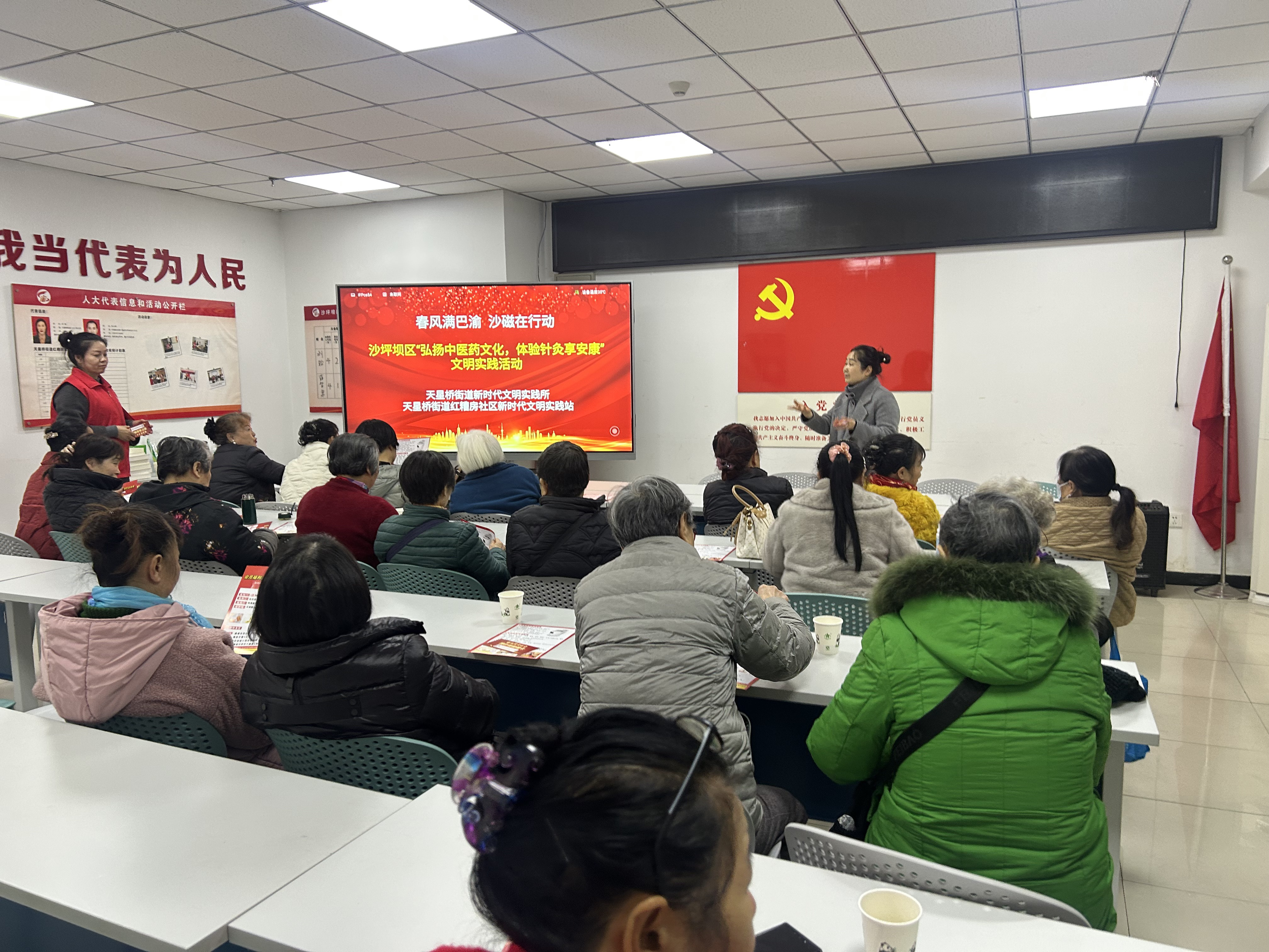 为传承弘扬中医药传统文化,提升社区居民的健康养生意识,2026年1月29日下午,沙坪坝区天星桥街道红糟房社区新时代文明实践站联合桐君阁大药房开展“弘扬中医药文化体验针灸享安康”主题文明实践活动。