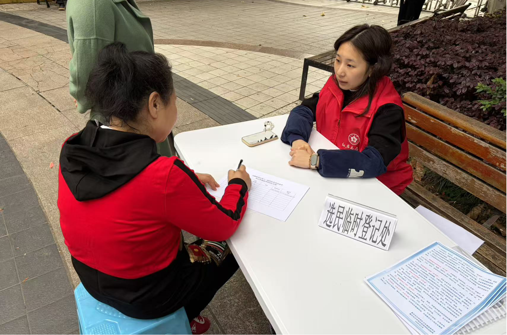 登记现场,社区在各小区醒目位置设立“选民临时登记处”,工作人员佩戴工作牌、备齐登记资料,为前来登记的居民提供一站式服务。针对老年居民行动不便的情况,社区主动提供上门登记服务。此外,社区还通过居民微信群、楼栋公告栏张贴公告、入户走访发放宣传单等方式,全方位宣传选民登记的时间、地点、所需材料及相关政策,让居民清晰知晓登记流程与自身权利,提升参与积极性。