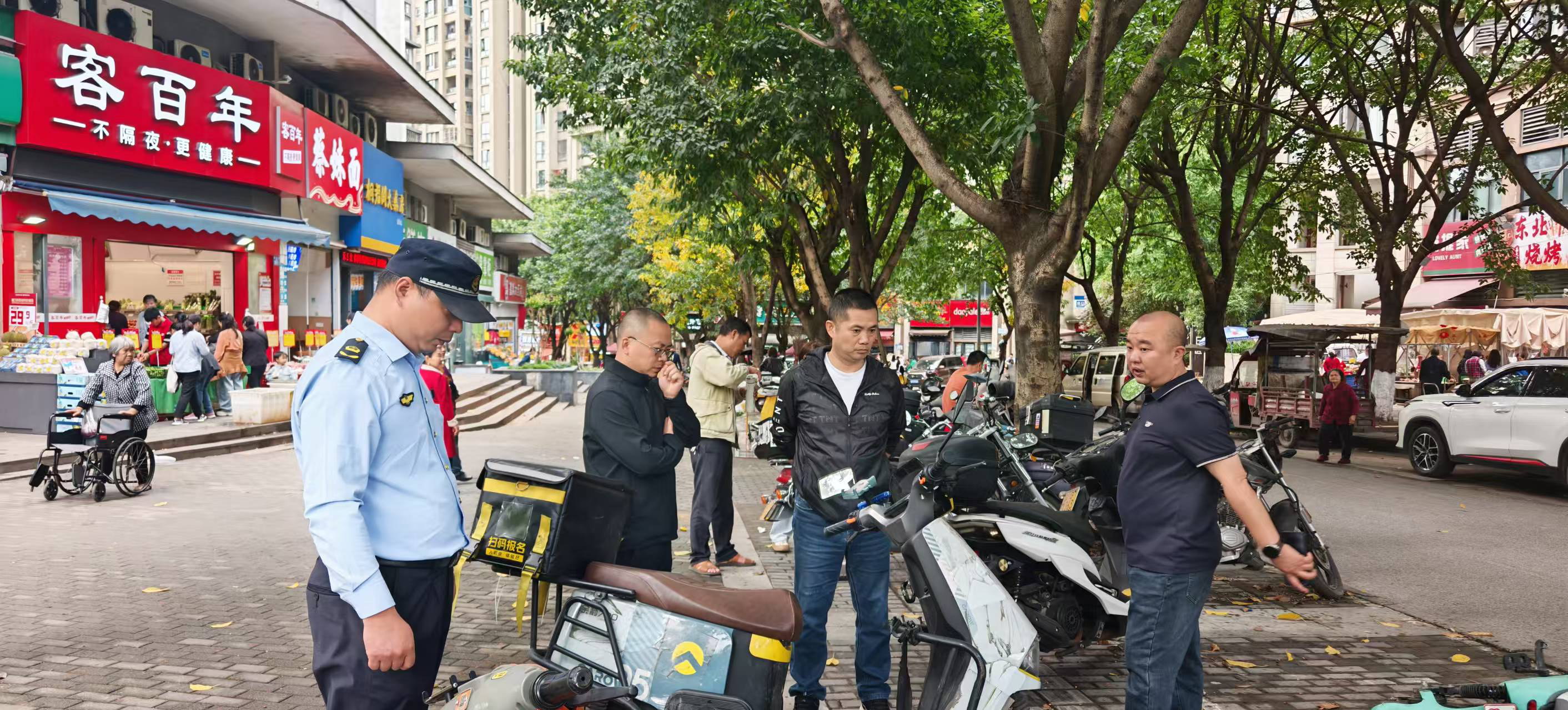 针对人行道上共享单车乱停放行为,综合执法岗要求执法队员加强宣传教育和巡查力度,及时劝导和规范车辆乱停放等行为,切实保障辖区市容环境品质与群众出行安全感。