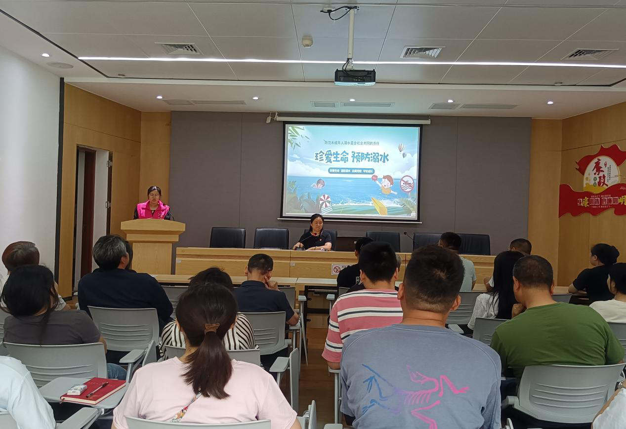 活动组织30余名学生家长参与,通过安全教育宣讲、普及防溺水知识,并结合警示教育片,直观呈现野外戏水的危险性。同时,社区明确“人人参与防溺水”倡议,强化家校协同责任意识。