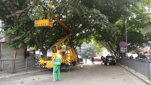 沙坪坝区绿化处启动“局长接待日”关注的民生难题工作,对童家桥街道的五灵观社区、和睦村社区等地的行道树进行修枝,撤除影响安全的树木。