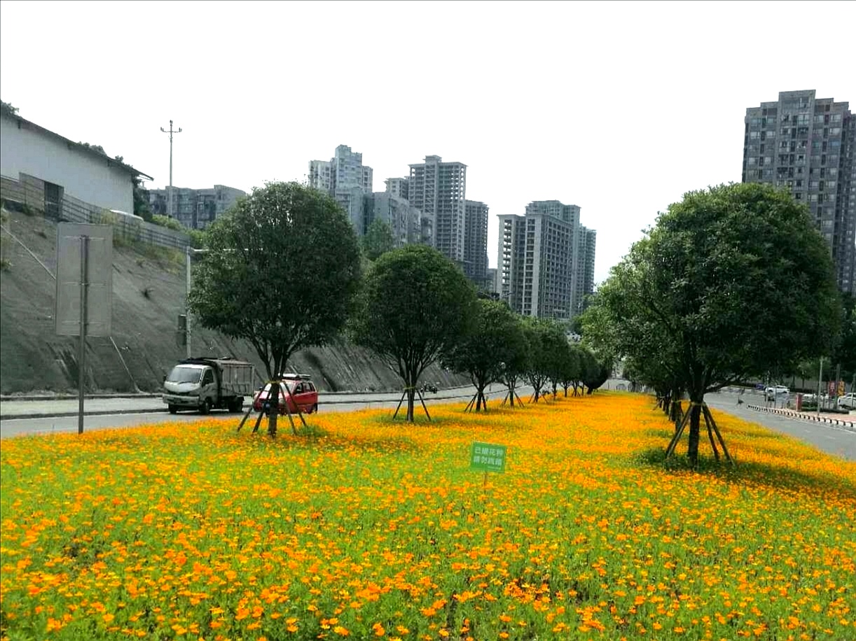 今年上半年,绿化处接管万达广场旁回旋道绿地,此处绿地面积约1200平方米,地被草坪老化严重,位置紧邻城市主干道经纬大道,为提升其景观颜值,我处运用撒播鲜花种子的方式对其进行景观提升整治,目前已见成效。