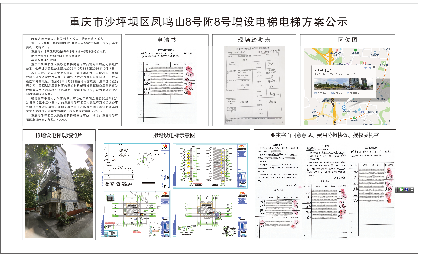 重庆市沙坪坝区凤鸣山8号附8号增设电梯方案公示