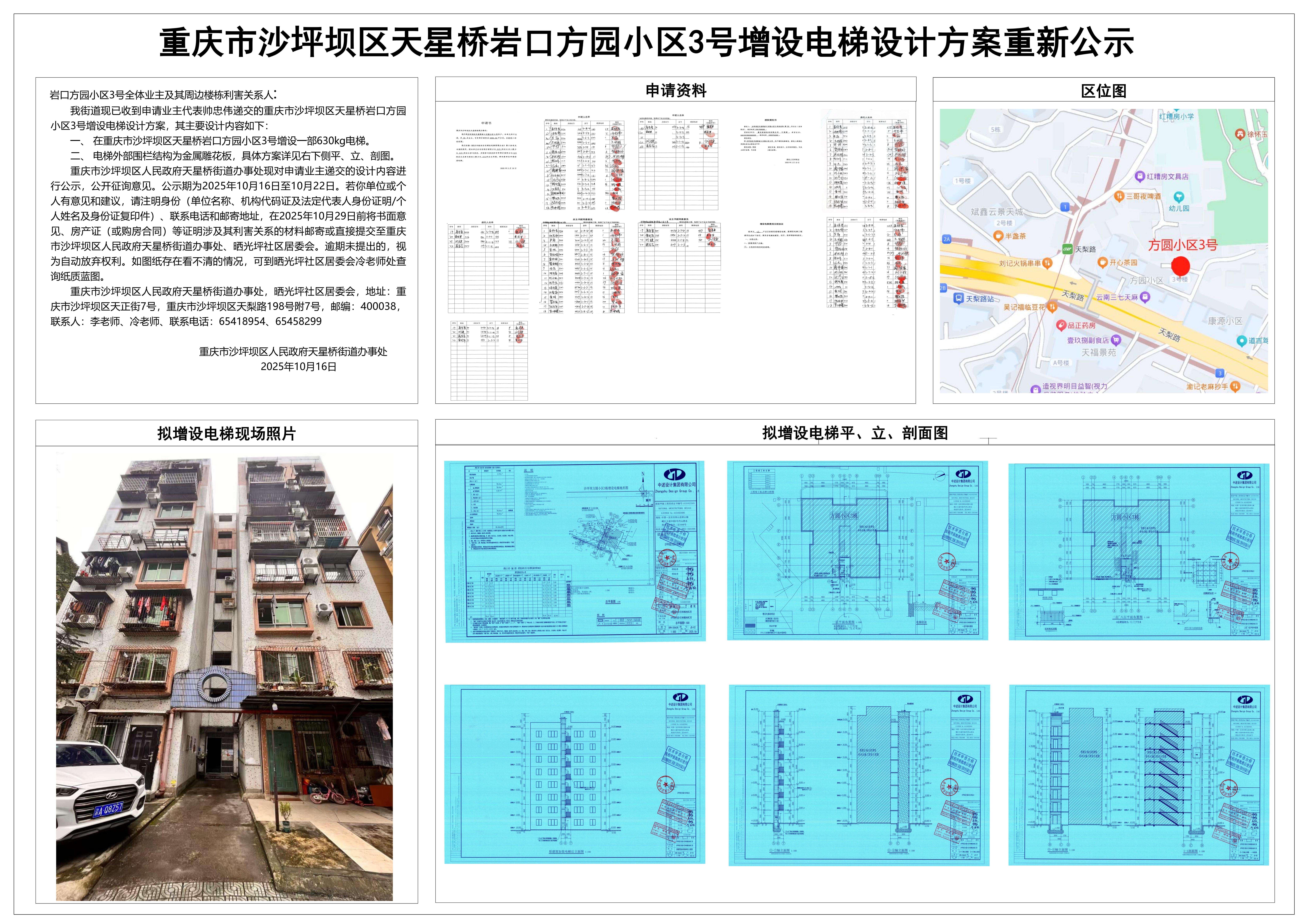 重庆市沙坪坝区天星桥岩口方圆小区3号增设电梯设计方案重新公示