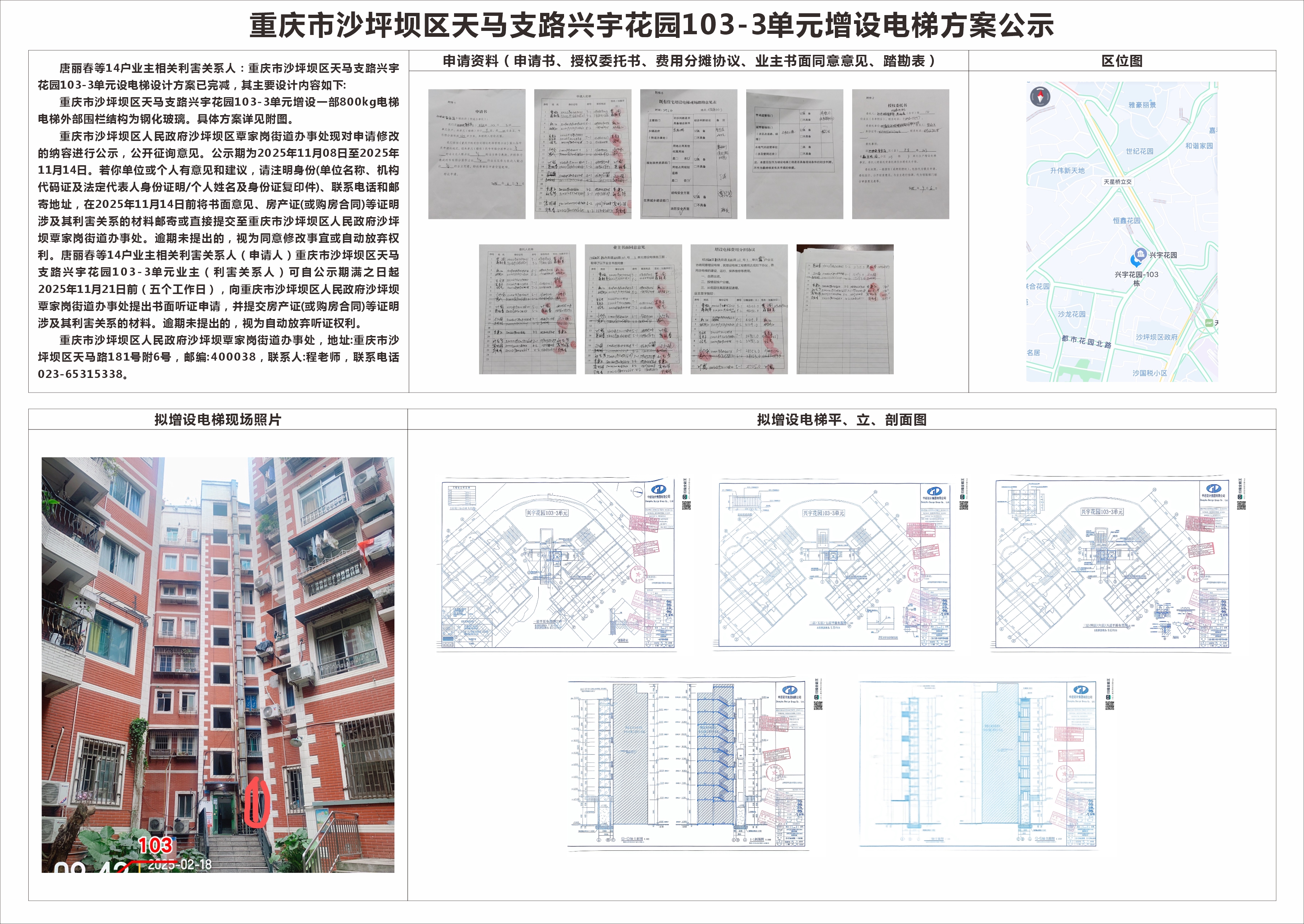 重庆市沙坪坝区天马支路兴宇花园103—3增设电梯方案公示