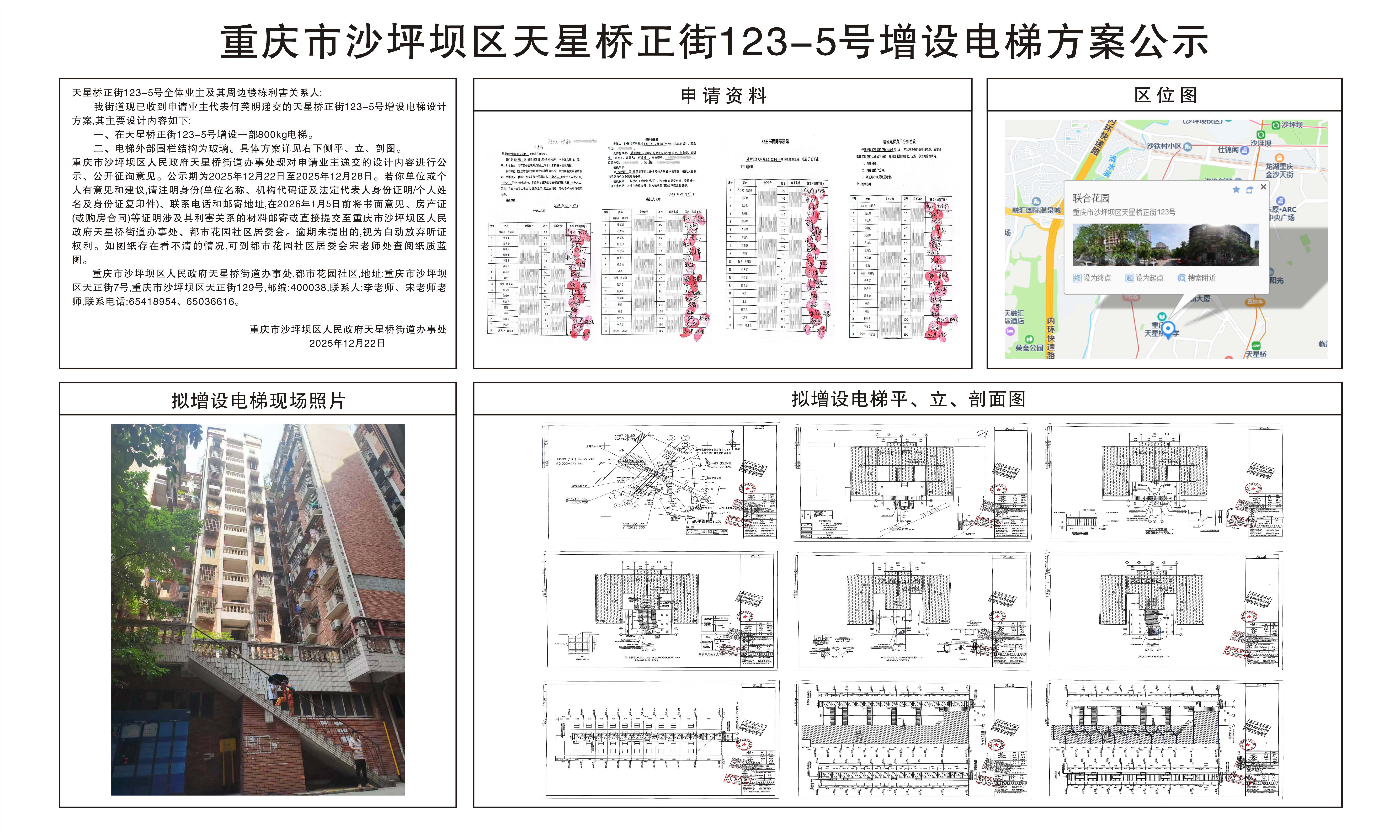 重庆市沙坪坝区天星桥正街123-5号增设电梯方案公示、重庆市沙坪坝区晒光坪56-9栋增设电梯方案公示
