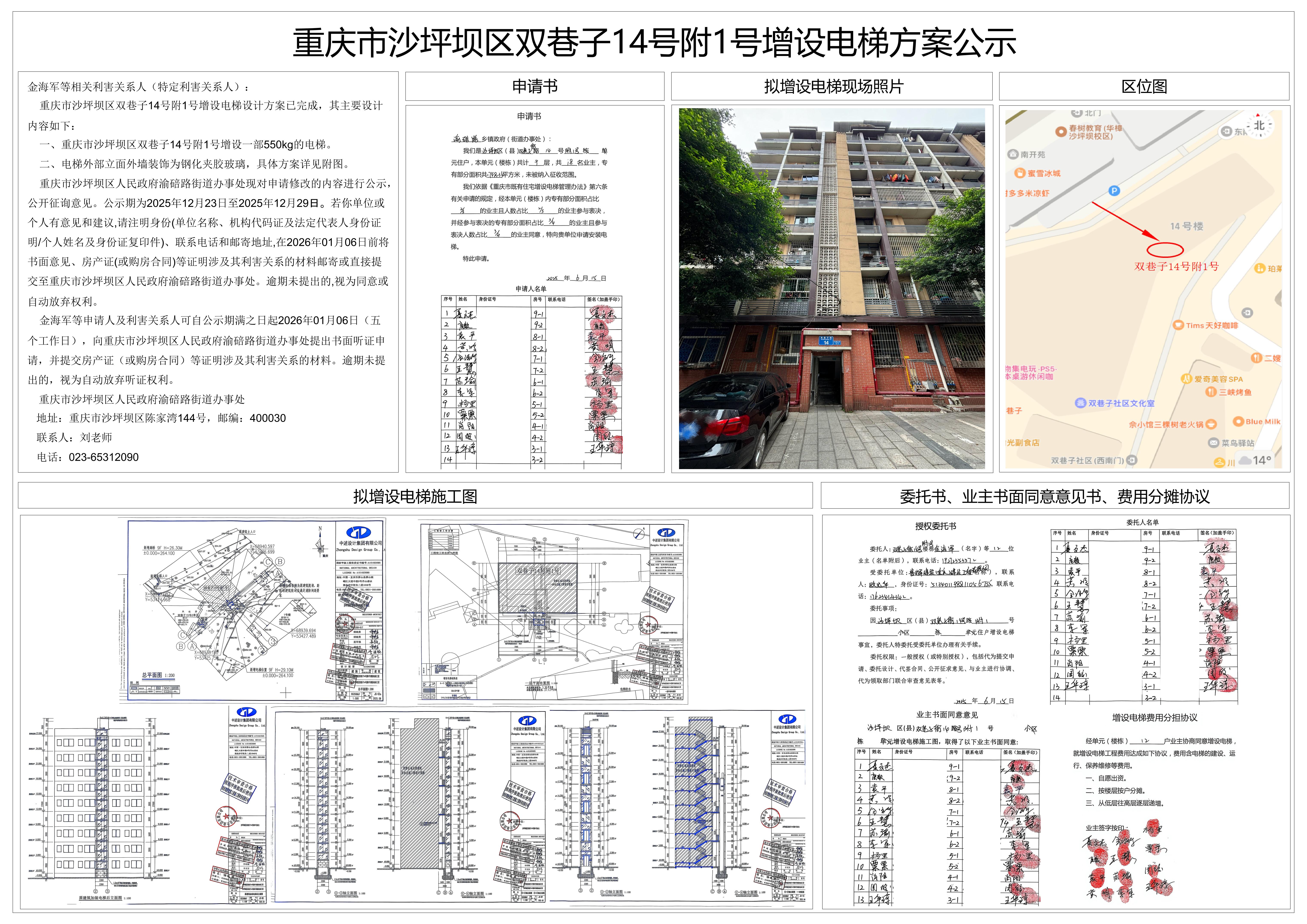 重庆市沙坪坝区双巷子14号附1号增设电梯方案公示