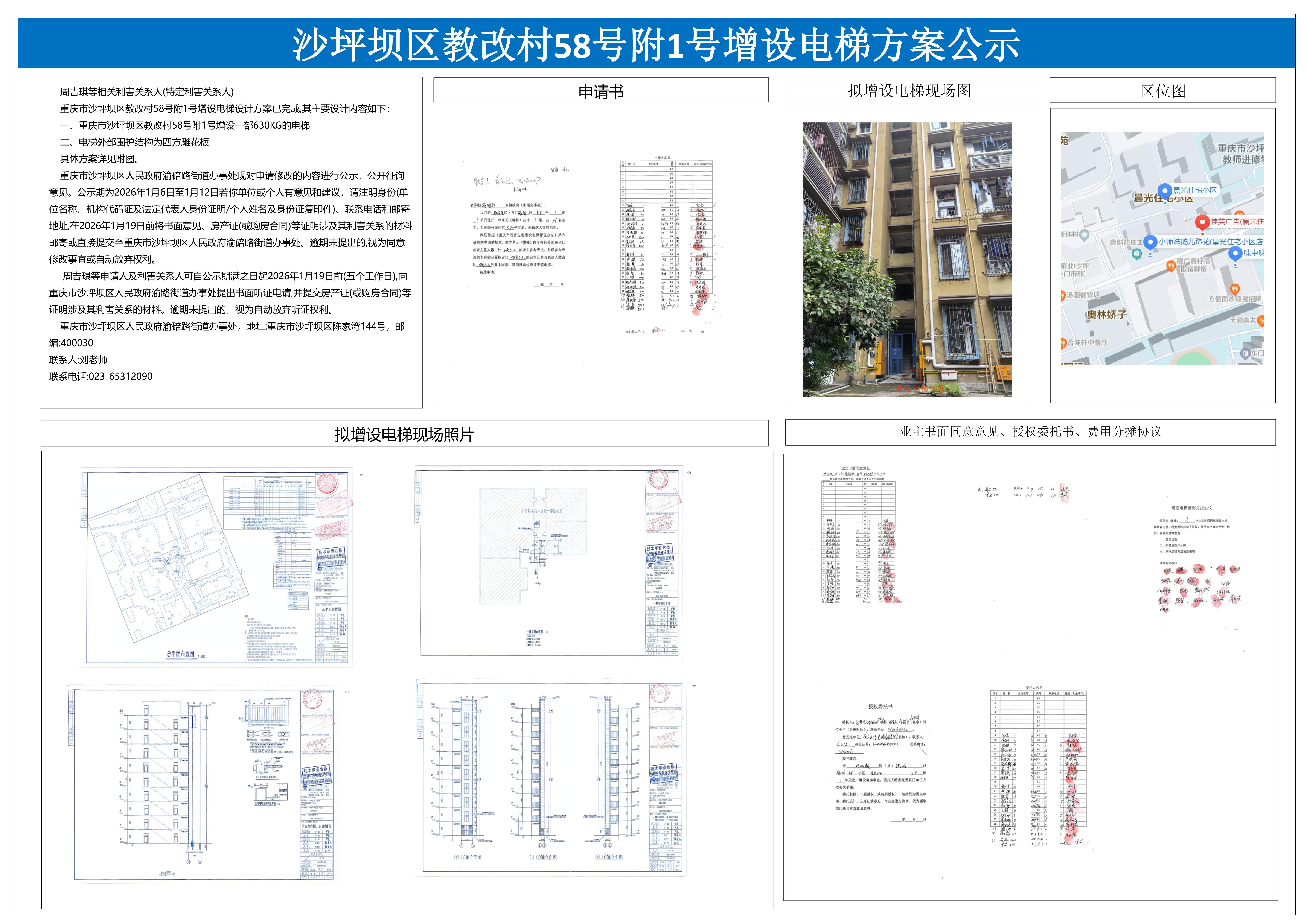 重庆市沙坪坝区教改村58号附1号增设电梯方案公示
