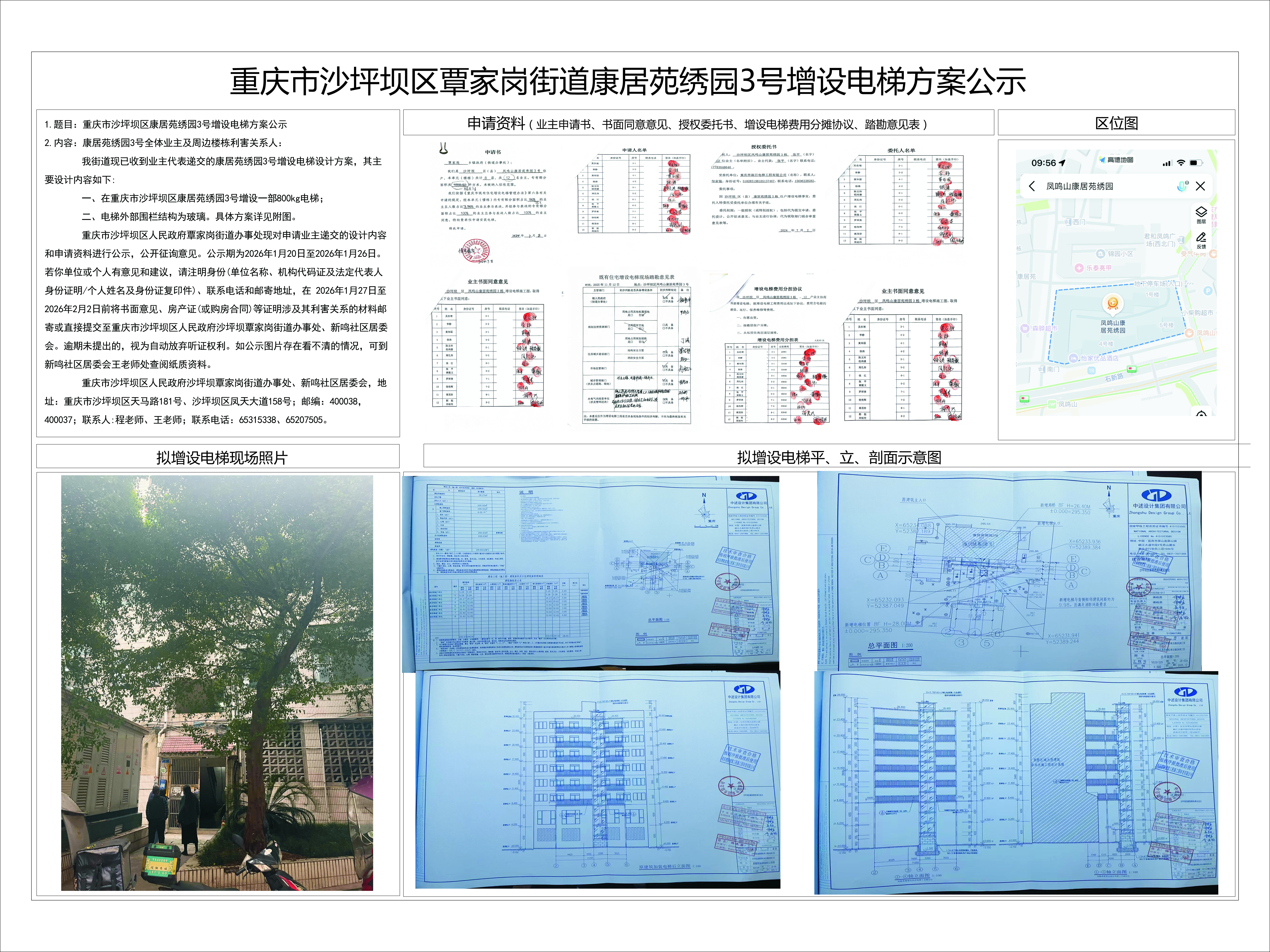 重庆市沙坪坝区覃家岗街道康居苑绣园3号增设电梯方案公示