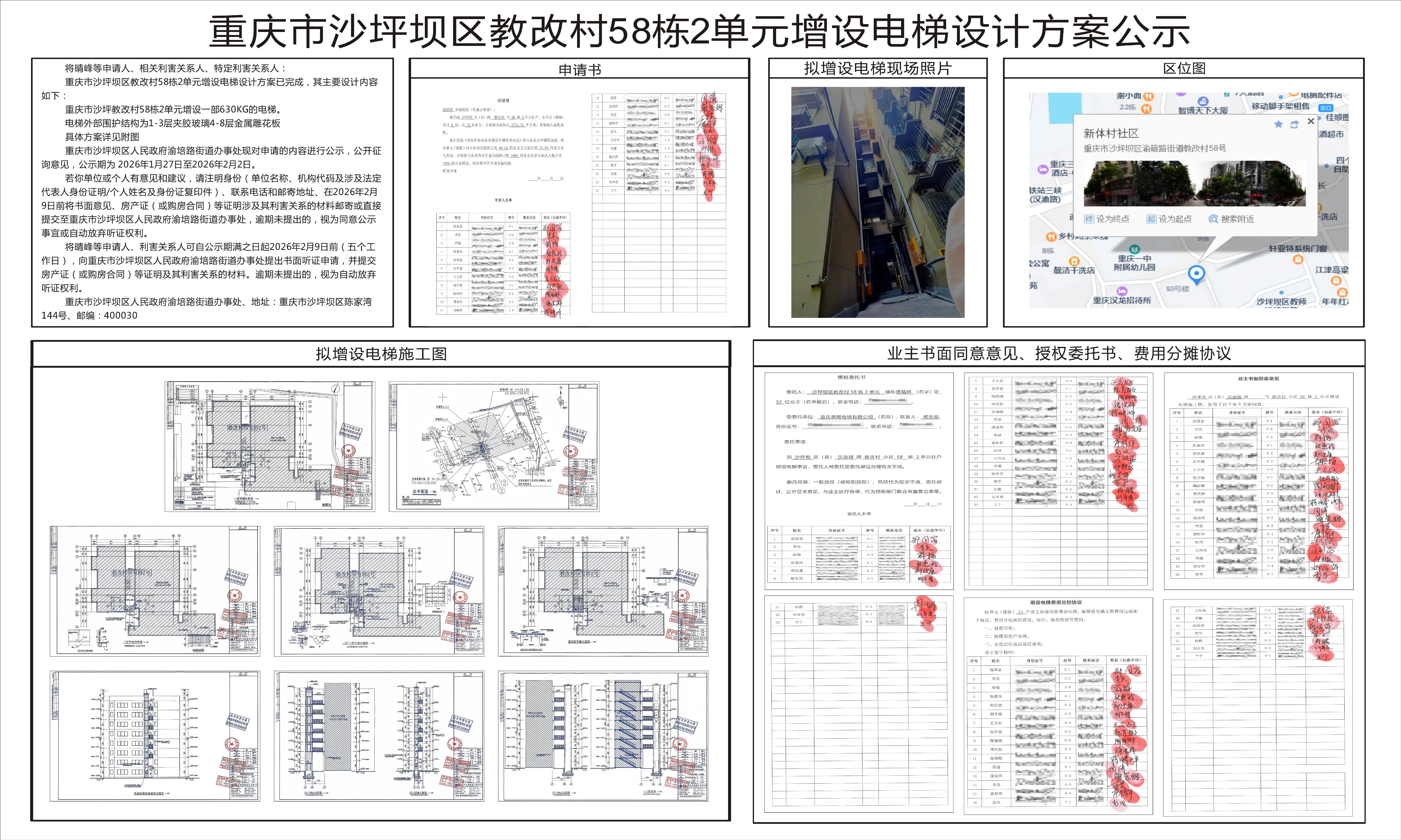 重庆市沙坪坝区教改村58栋2单元增设电梯方案公示