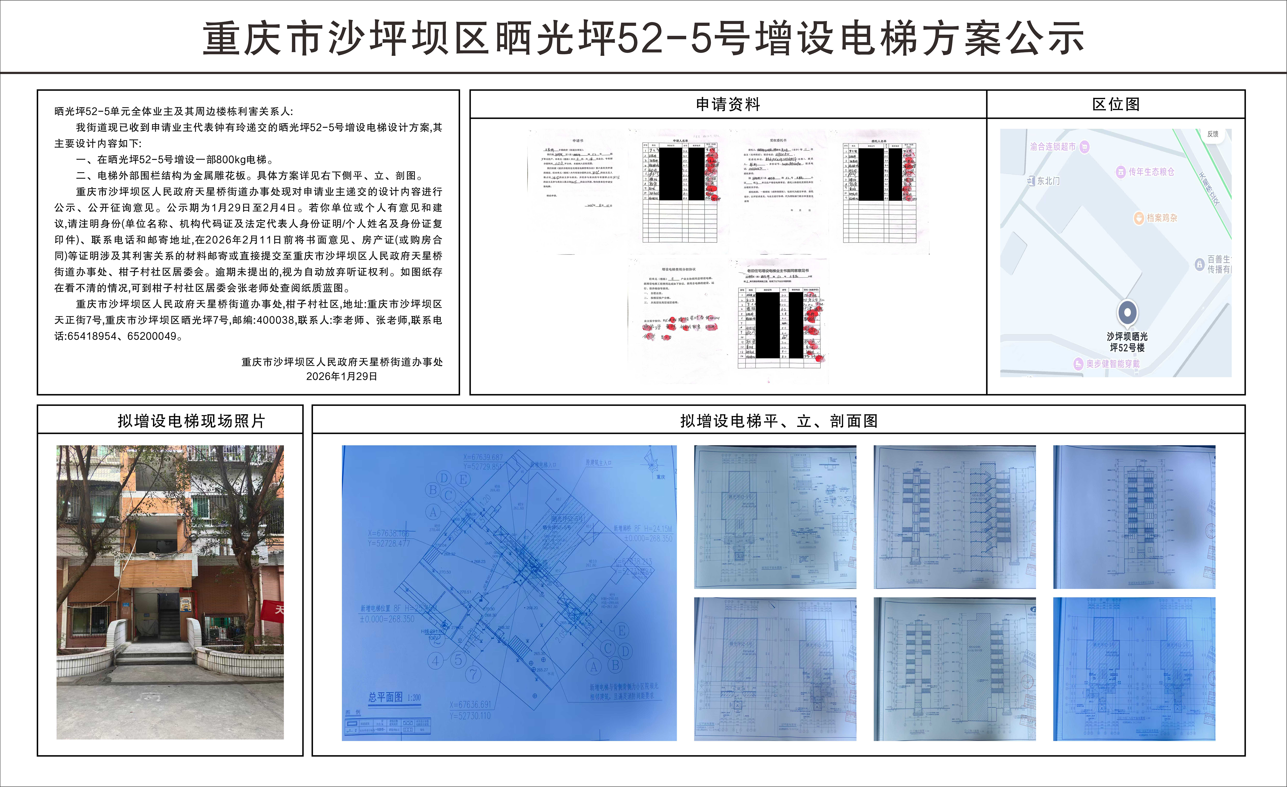 重庆市沙坪坝区晒光坪52-5号增设电梯方案公示