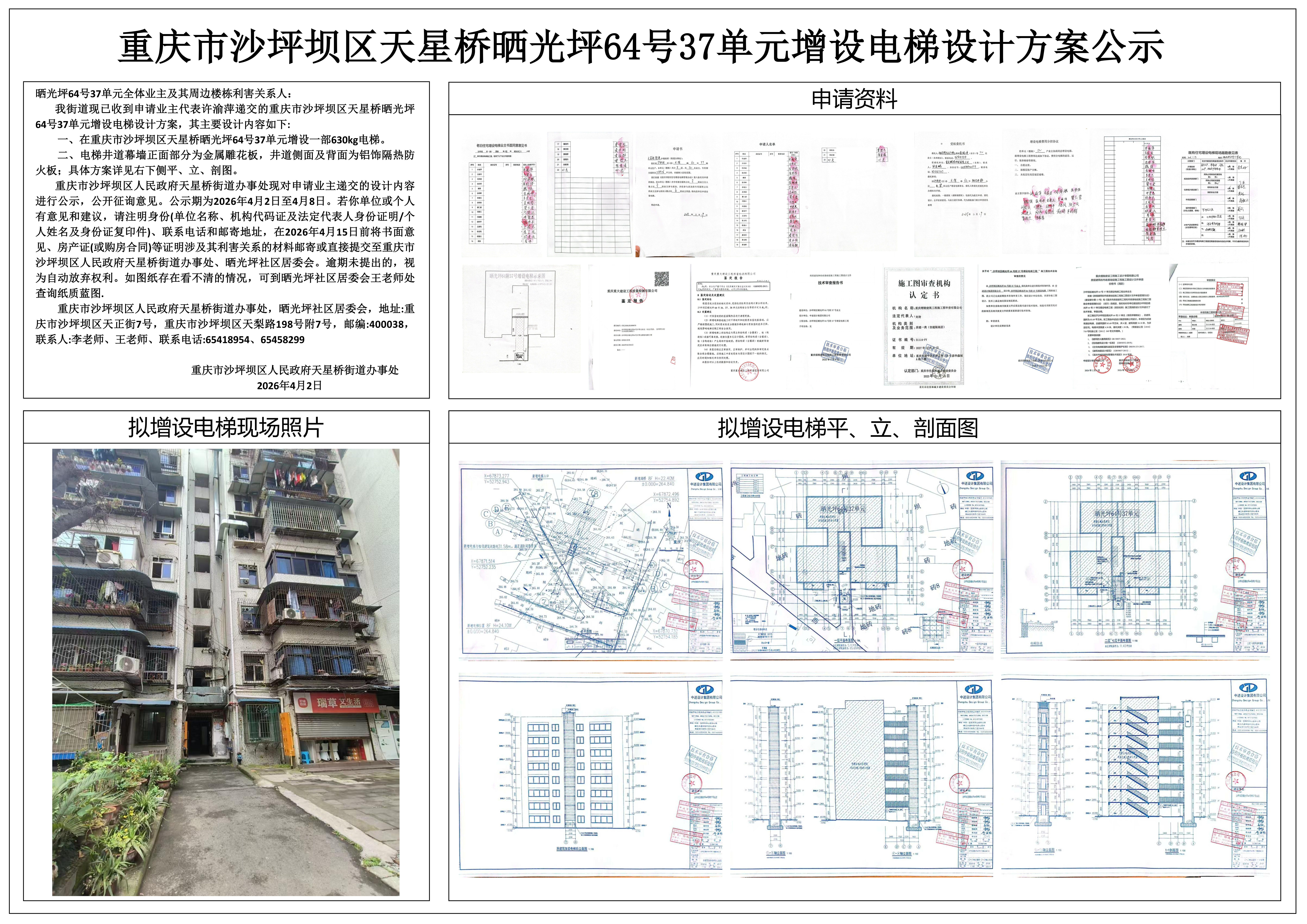 重庆市沙坪坝区天星桥街道晒光坪64号37单元增设电梯设计方案公示