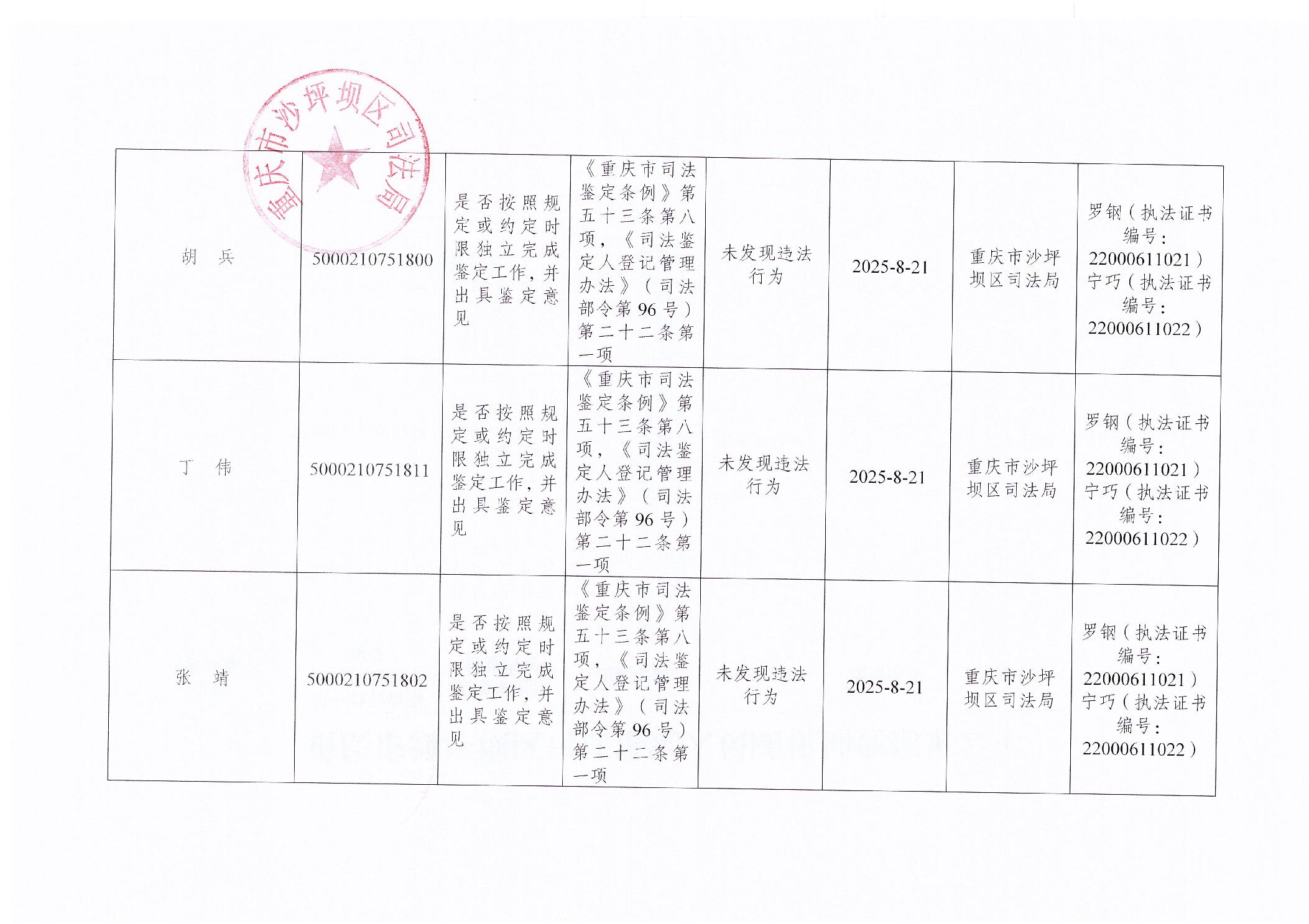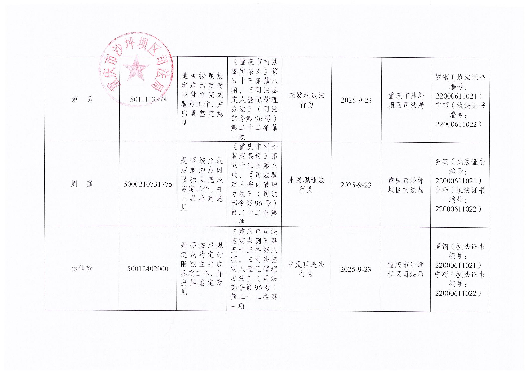 重庆市沙坪坝区司法局开展2025年度“双随机、一公开”检查工作结果公示(鉴定机构、鉴定员)