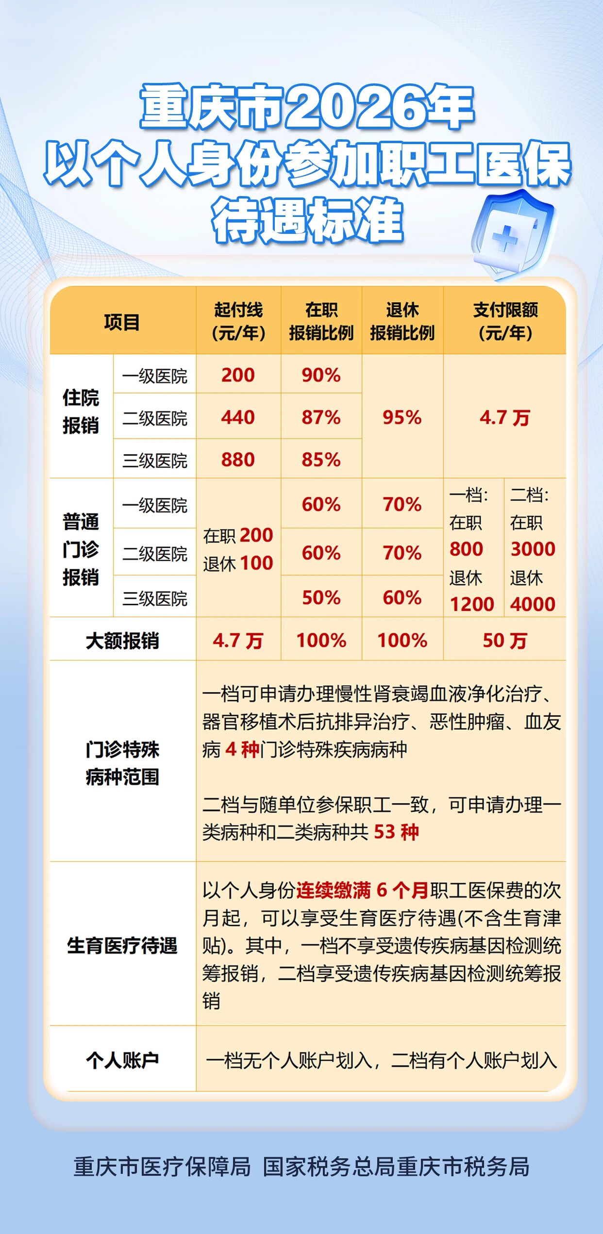 关注!重庆市2026年以个人身份参加职工医保待遇标准发布