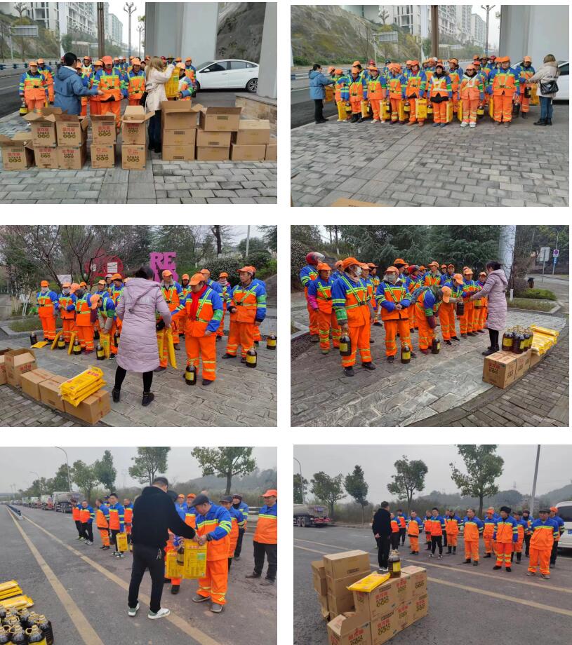 新春佳节将至,为表达对一直坚守在最脏、最苦的岗位上的一线环卫工人的关爱之情,感谢他们这一年来的辛勤付出,1月23日,沙坪坝区环境卫生处西部环卫二所分批次组织辖区清扫保洁外包服务公司开展了一线环卫工人慰问活动,为他们准备了春节福利(大米、食用油)。当一份份心意发放至每一位环卫工人手中时,喜悦和满足浮现于每个人脸上,给寒冷的冬天带来了阵阵暖意。福利发放结束后,管理人员还向环卫工人们宣传了冬季防火防灾的应急措施及环卫安全作业的知识,增强其安全意识,确保节日期间环卫各项工作安全有序开展。