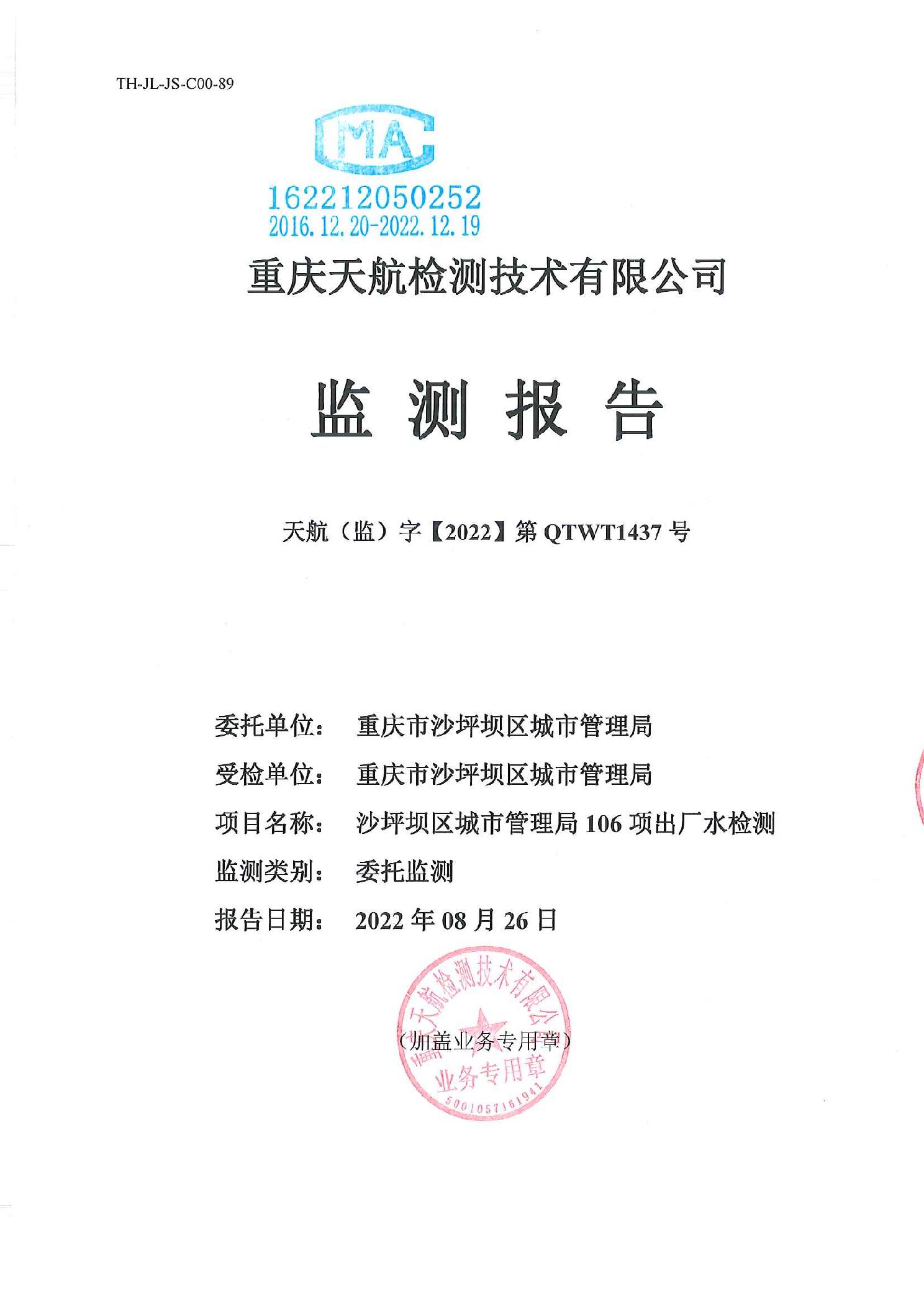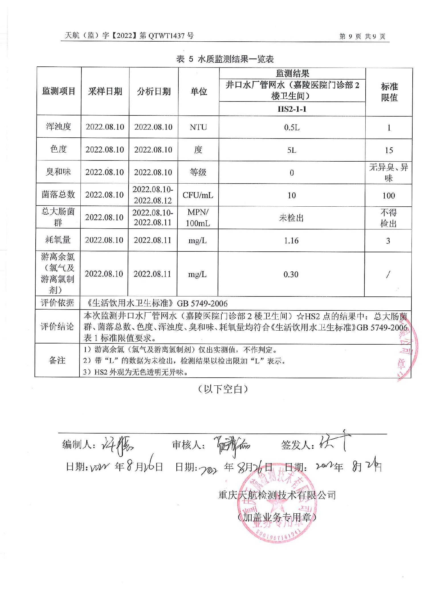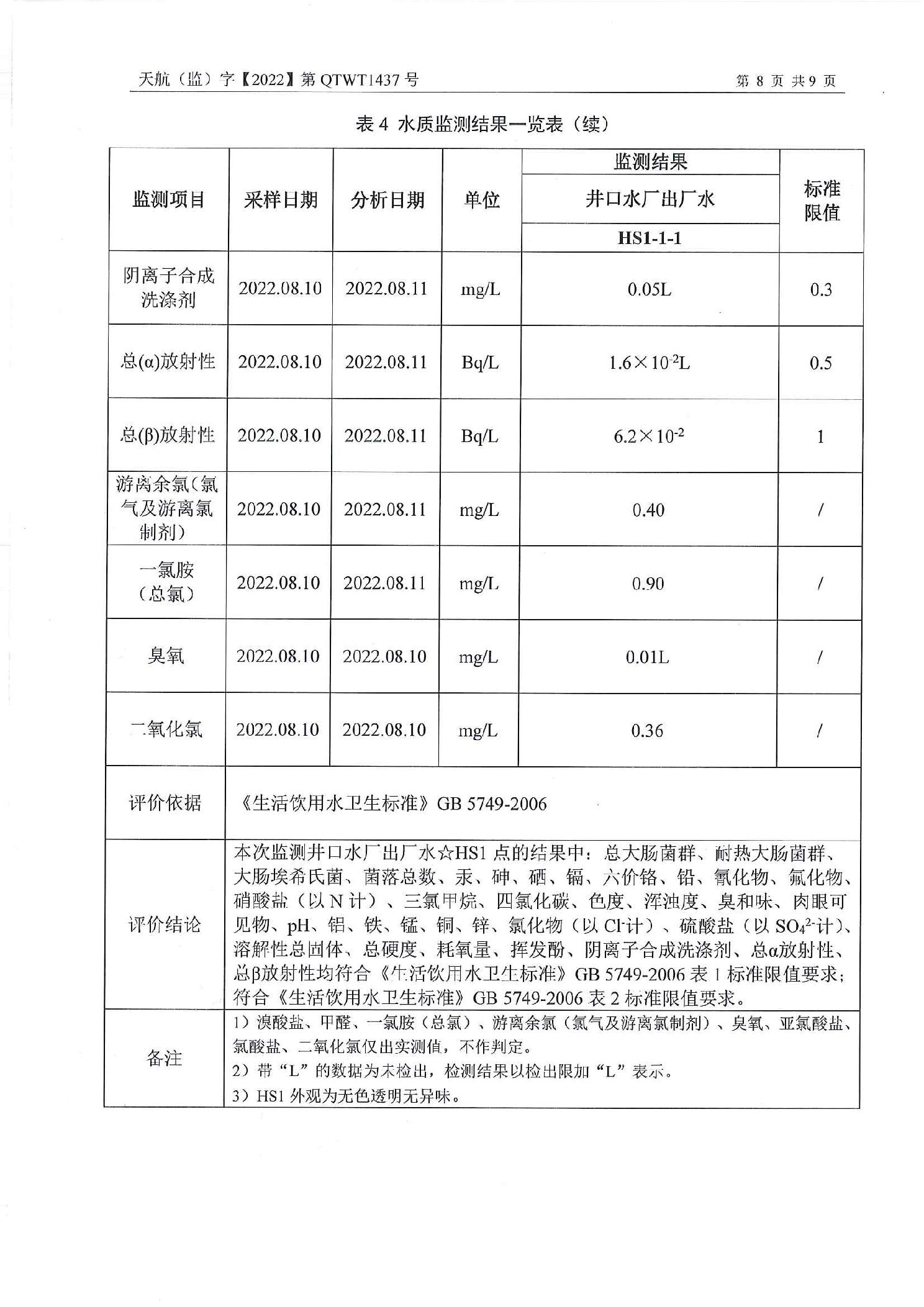 | 名称: | 关于井口水厂2022年8月水质检测报告的公示 | ||||