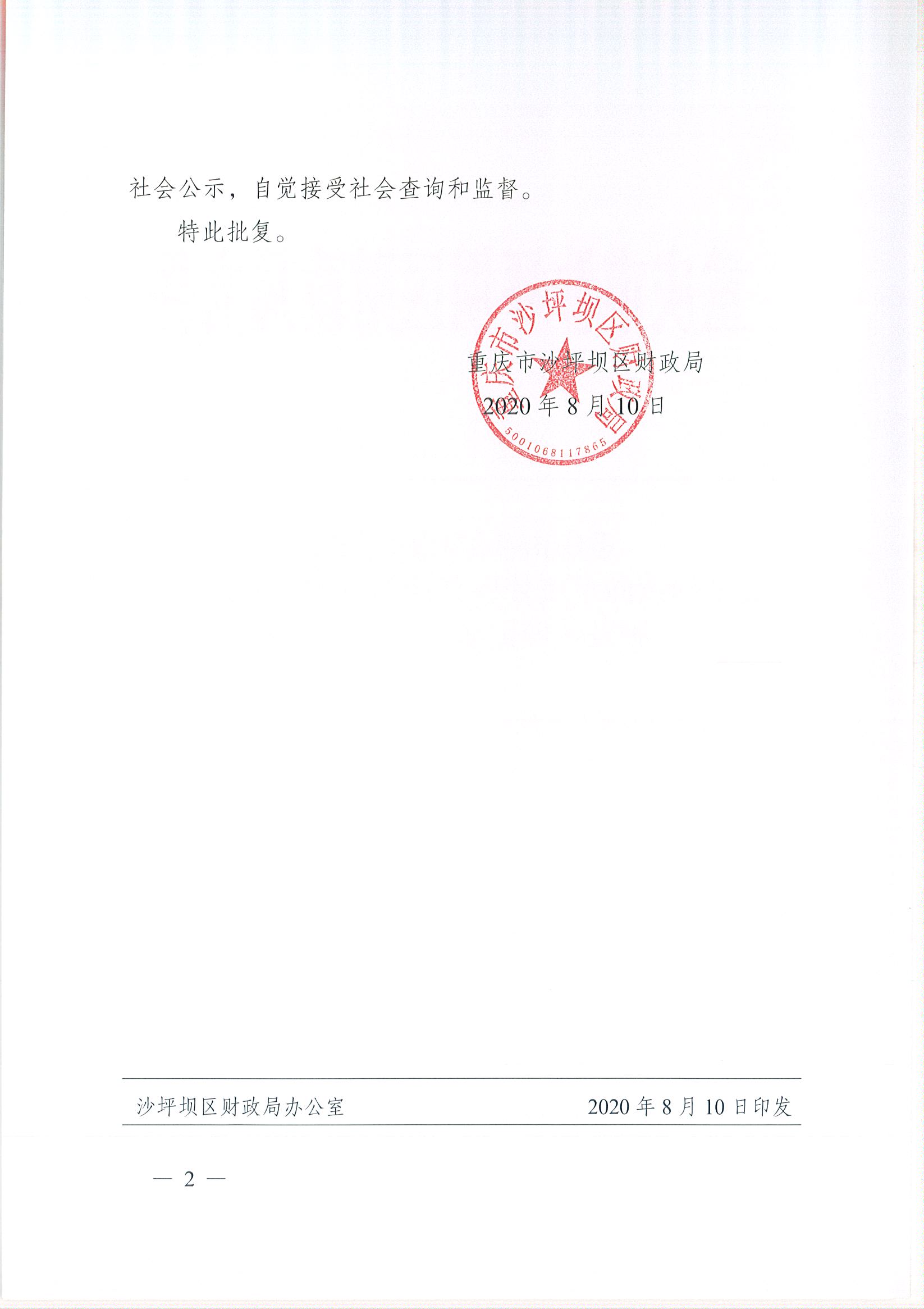 | 发布机构: | 沙坪坝区财政局 | 生成日期: | 2020-08-19 | 发布日期: | 2020-08-19 |