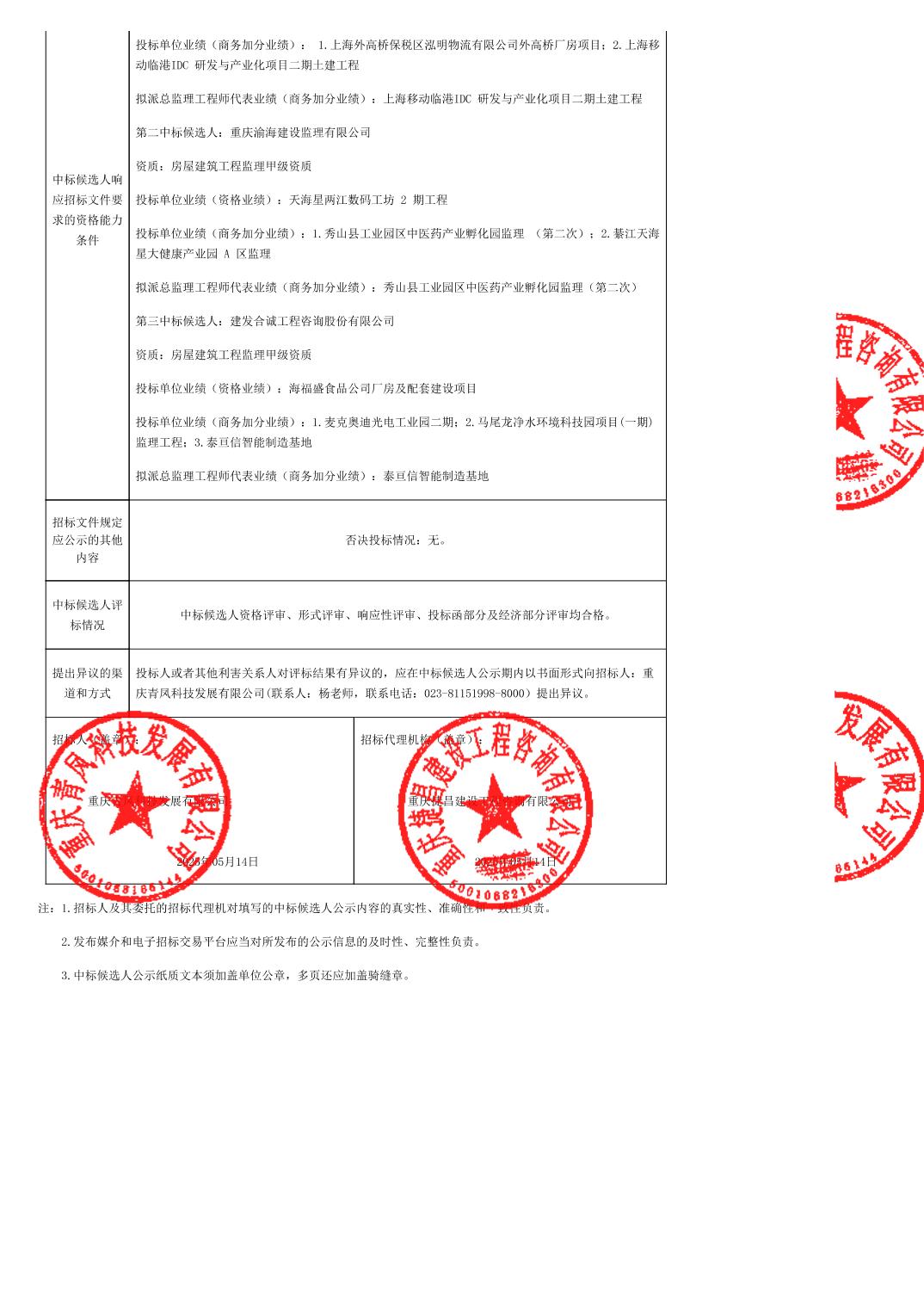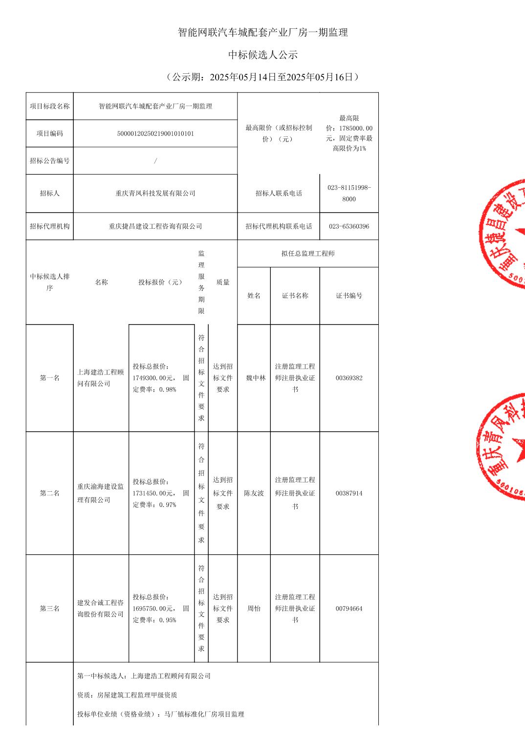 智能网联汽车城配套产业厂房一期监理中标候选人公示