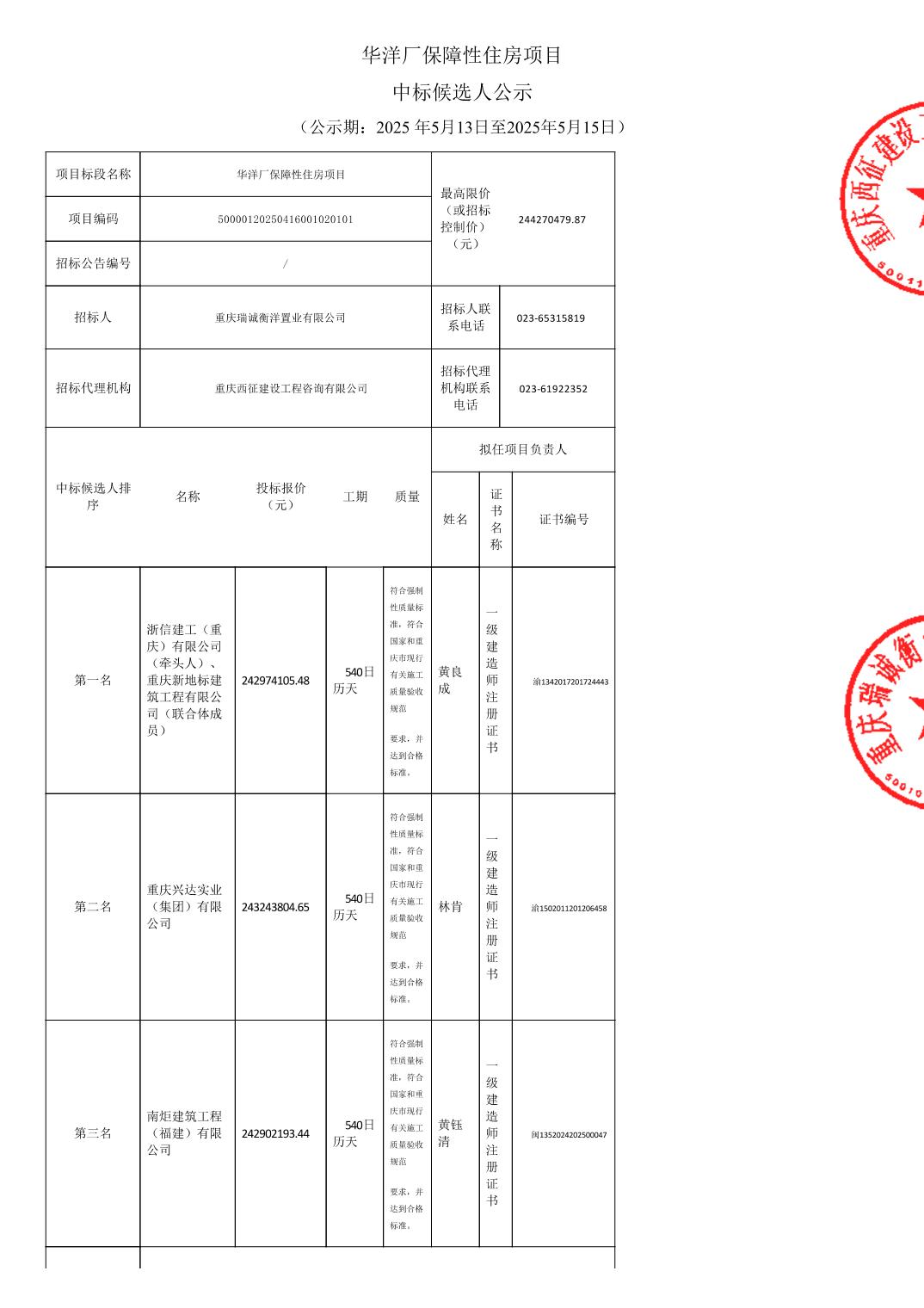 名称: | 华洋厂保障性住房项目中标候选人公示 | ||||