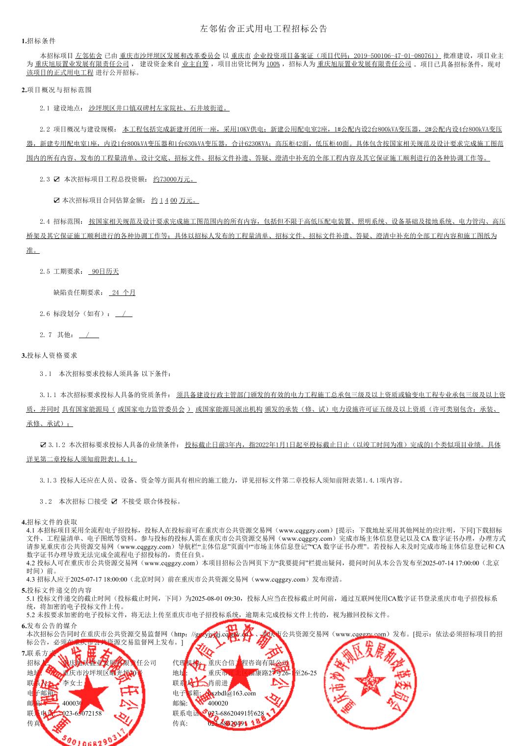 名称: | 左邻佑舍正式用电工程招标公告 | ||||