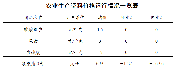 五、农业生产资料价格运行平稳。