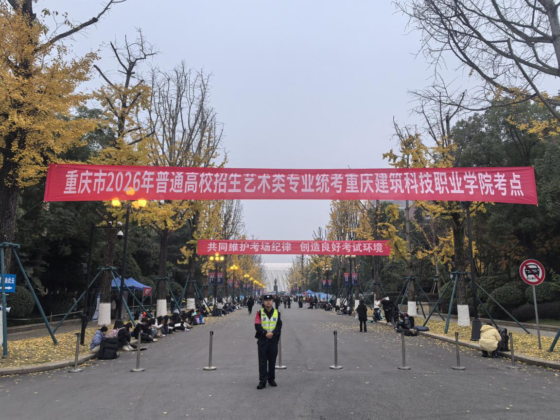考试当日,各考点参勤民警文明执勤、认真履职,共投入警力16人次、警车12台,有效维护了考点现场治安秩序,做好交通秩序疏导工作,确保2026年重庆市普通高校招生艺术类专业统考、2025年下半年中小学教师资格考试(面试)两类考试平稳顺利完成。