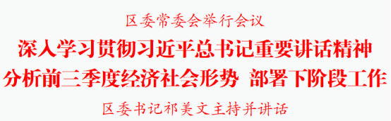 9月30日下午,区委常委会举行会议,深入学习贯彻习近平总书记近期重要讲话重要指示精神,贯彻落实中央、市委重要文件精神和近期市委重要会议精神,分析全区前三季度经济社会形势,研究部署有关工作。