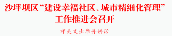 10月30日上午,沙坪坝区“建设幸福社区、城市精细化管理”工作推进会召开,对幸福社区建设和城市精细化管理再部署、再动员。区委书记祁美文出席并讲话。他强调,要深入学习贯彻党的二十大和二十届四中全会精神,深化落实习近平总书记关于城市工作的重要论述精神和视察重庆重要讲话重要指示精神,按照市委六届七次全会工作要求,强化责任担当,厚植为民情怀,持续用力、久久为功,让沙坪坝现代化建设成果更多更好惠及群众。