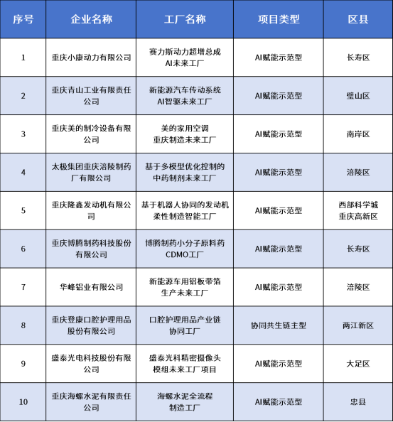 1月2日,据市经济信息委消息,日前2025年度重庆市未来工厂名单“出炉”,来自智能网联汽车、先进材料等产业领域的10家企业工厂入选。