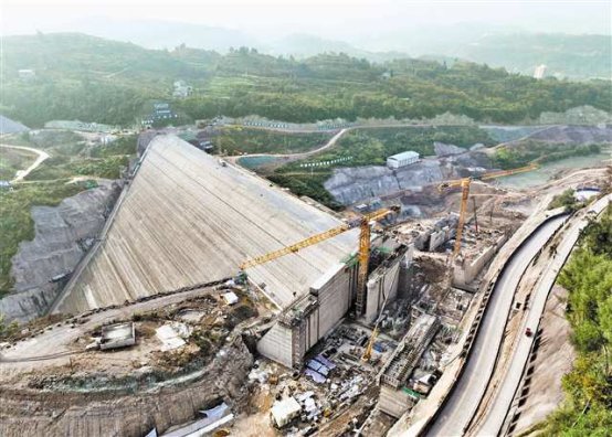位于綦江区的藻渡水库施工现场,映入记者眼帘的是一派热火朝天的奋战景象:运输物料的重型卡车来回穿梭,挖掘机长臂挥舞正在开挖作业,远处钢筋加工棚内焊花四溅,叮叮当当的敲击声奏响一曲激昂的建设交响乐。