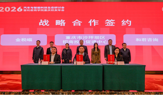 开幕式上,区招商投资促进局作沙坪坝汽车产业生态推介,围绕区域产业基础、资源条件和生态优势进行了介绍,并与和君咨询、金税喵(重庆)科技有限公司签署框架合作协议。各方将围绕沙坪坝汽车产业生态培育、产业资源链接、项目招引服务、企业创新赋能等方面深化合作,推动资源对接和成果转化。