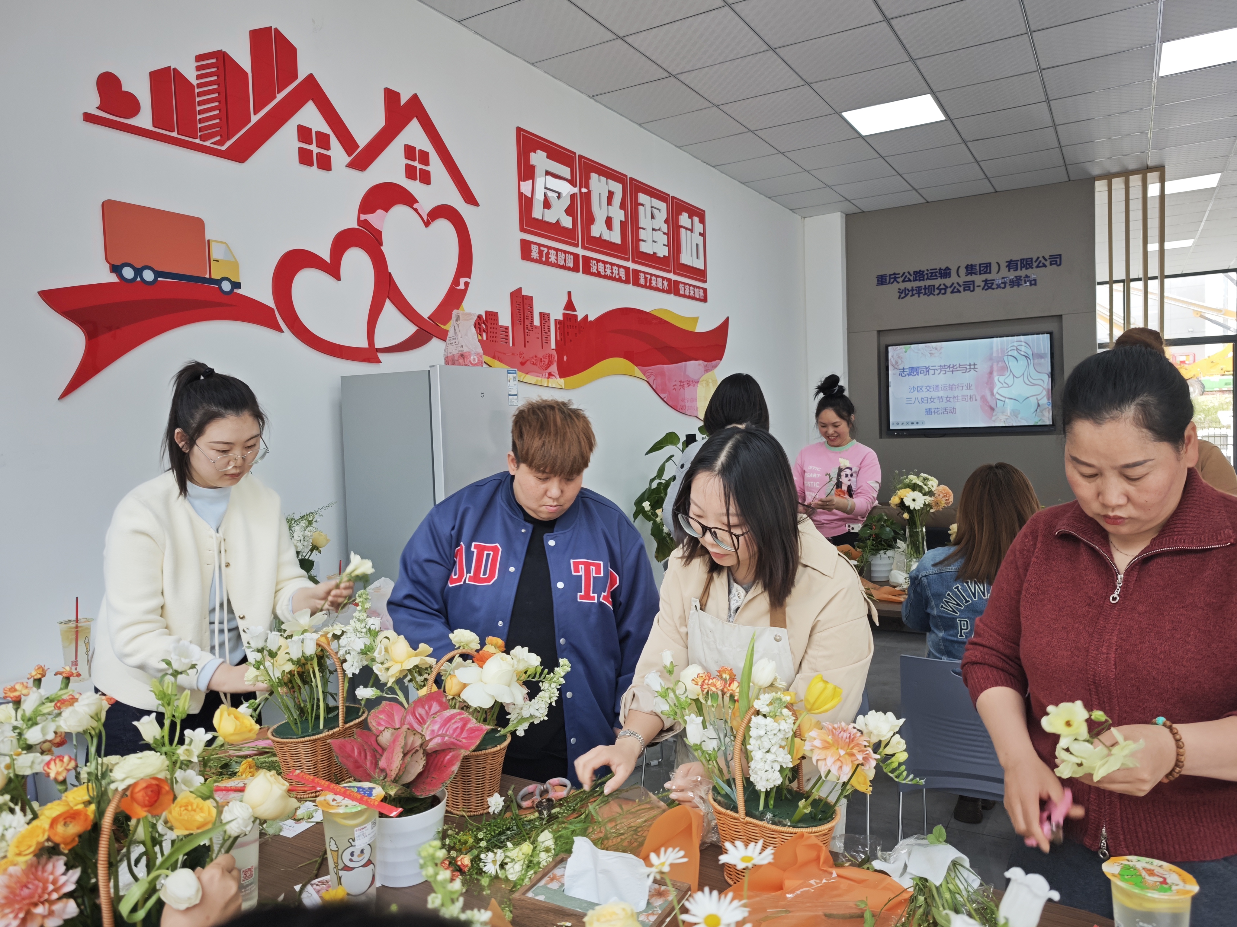 在三八国际妇女节到来之际,为切实关爱交通领域新就业群体,致敬坚守一线的网约车、货车女性司机,3月5日,沙坪坝区交通服务中心主办、重庆公路运输集团沙坪坝分公司承办的“志愿同行・芳华与共”插花体验活动在渝路同心友好驿站温情举办,辖区10名女性司机代表欢聚一堂,共度温馨节日。