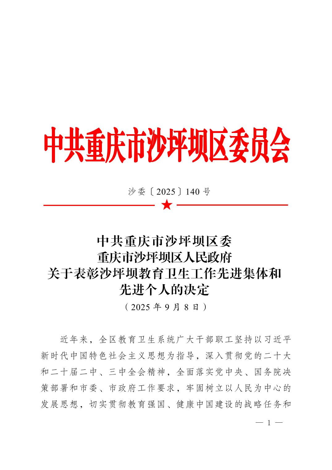 | 名称: | 关于表彰沙坪坝教育卫生工作先进集体和先进个人的决定 | ||||