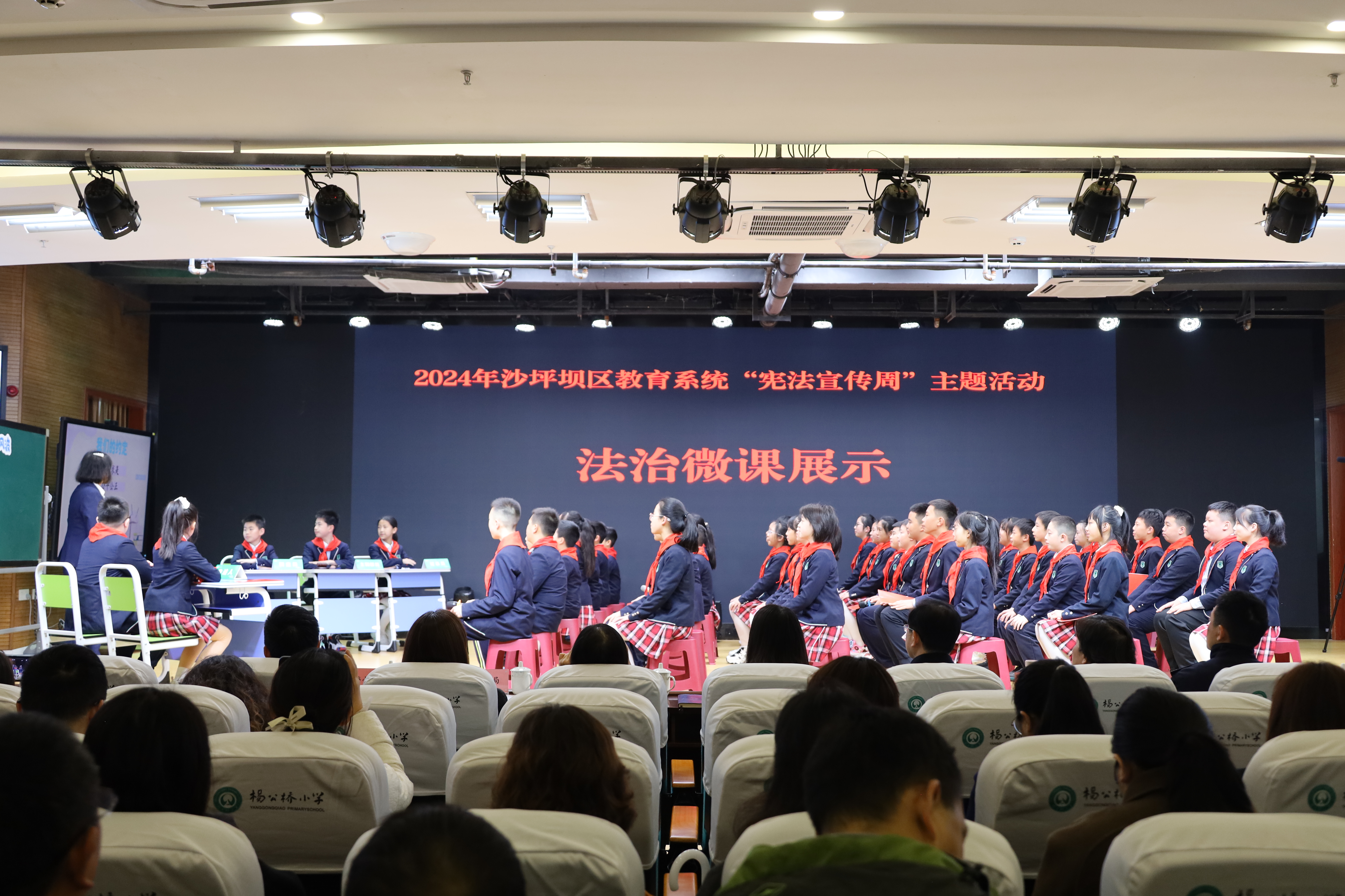 12月3日,沙坪坝区教育系统在杨公桥小学举行2024年国家宪法宣传周主题活动,区人大、区教委、区法院、区检察院、区公安分局、区司法局、区教师进修学院、各中小学相关领导及法治副校长、杨公桥小学家长代表参加活动。