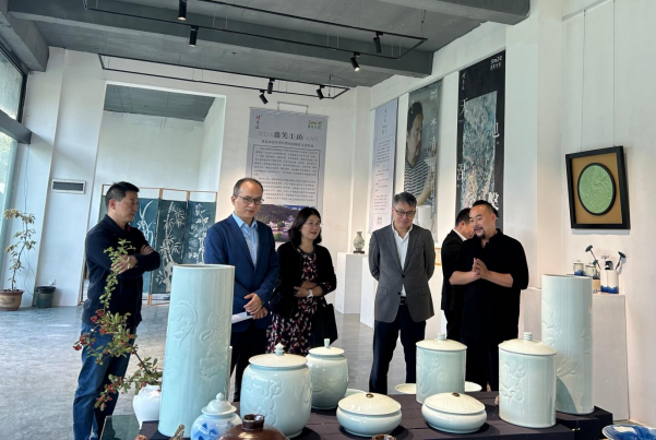 随后,调研组一行走进三合美术馆,实地查看了美术馆正在举办的清廉字画雕塑作品展,美术馆负责人介绍道,三合美术馆定期开展清廉巡展活动,通过清廉字画、清廉雕塑等作品展提升三河村清廉文化底蕴,让三河村的干部群众和游客都能感受到浓厚清廉氛围。在镜泉烧陶瓷文创基地,调研组查看了基地负责人在清廉村居建设的带动下,主动创造的一批含有清廉元素的“莲花”瓷器。调研组一行对三河村依托乡村文创产业,厚植清廉文化氛围的做法给予高度赞扬。