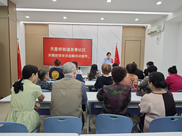 以案说法敲警响 警民联动筑防线--天星桥街道泉景社区开展防范非法金融活动宣传