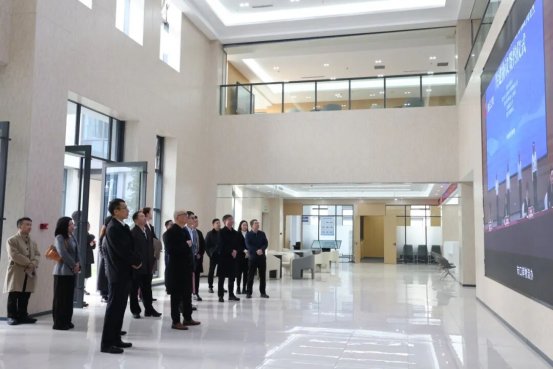 参访团一行首先来到西部陆海新通道国际法务区涉外公共法律服务中心,实地走访了西部陆海新通道国际法务区诉讼服务中心、西部陆海新通道商协会联盟法律服务工作组及域外法律查明服务站等核心功能阵地,听取了该法务区的战略定位、发展规划与功能布局,了解了该法务区如何运用集约化、智能化、便民化的法治服务平台建设为跨境企业提供优质高效的法律服务。