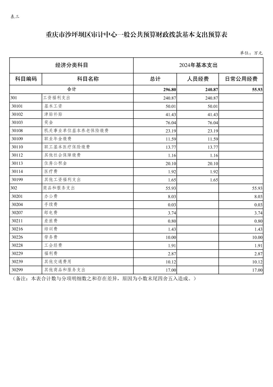 | 名称: | 重庆市沙坪坝区审计中心2024年单位预算情况说明 | ||||