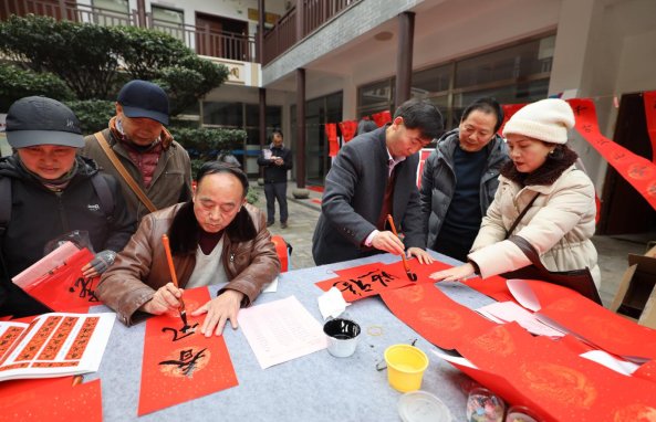 本次游园活动设置了夹弹珠挑战、“鸿”运乒乓、开心投投乐等8个趣味项目,军休干部们踊跃参与、热情高涨。活动中,大家或专注挑战、或默契配合,现场欢声笑语不断。活动现场还特设“写春联”专区,3位军休书法大师挥毫泼墨,一幅幅寓意吉祥的春联传递着浓浓年味与文化温情。