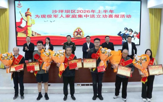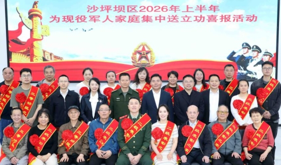 近日,沙坪坝区隆重开展为现役军人家庭送立功喜报活动,以最高礼遇致敬立功受奖军人,以真挚关怀温暖军属心田。此次活动创新采取“集中送达+入户关怀+走访慰问”相结合的方式,为160余户立功受奖军人家庭郑重送达喜报、传递荣光,进一步厚植尊军崇军社会风尚,为巩固军政军民团结、凝聚国防建设力量筑牢坚实根基。