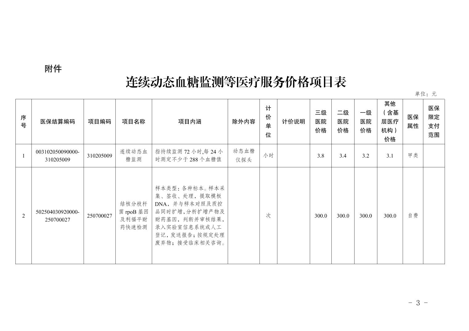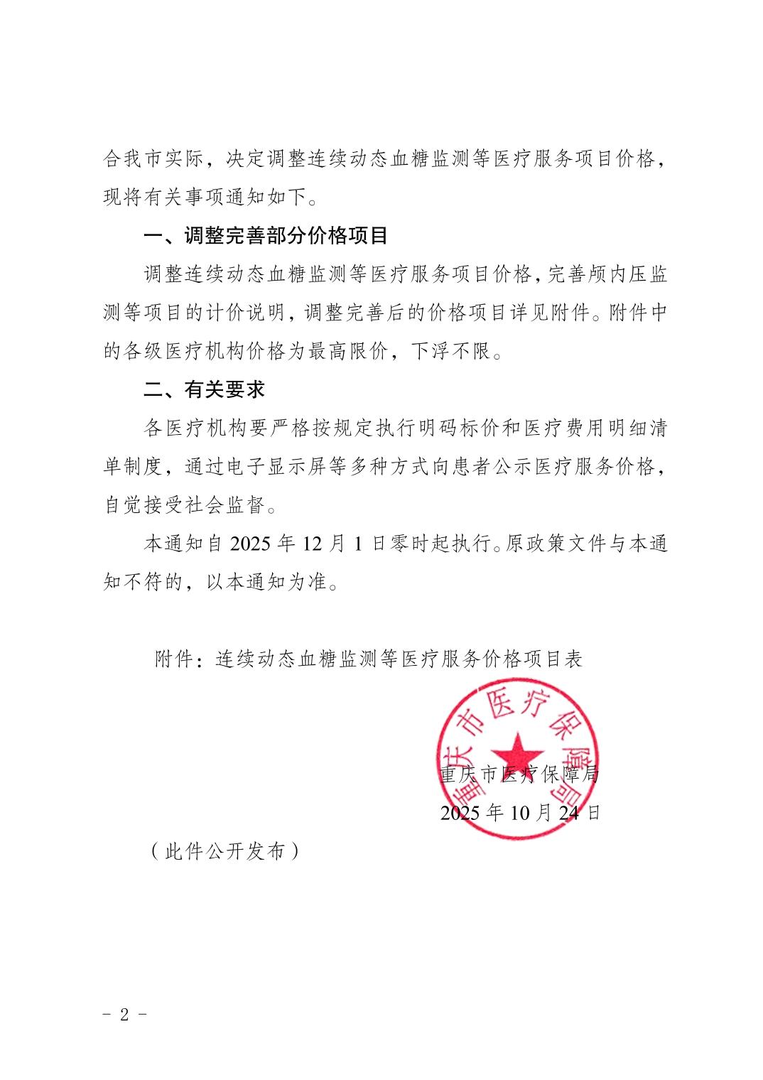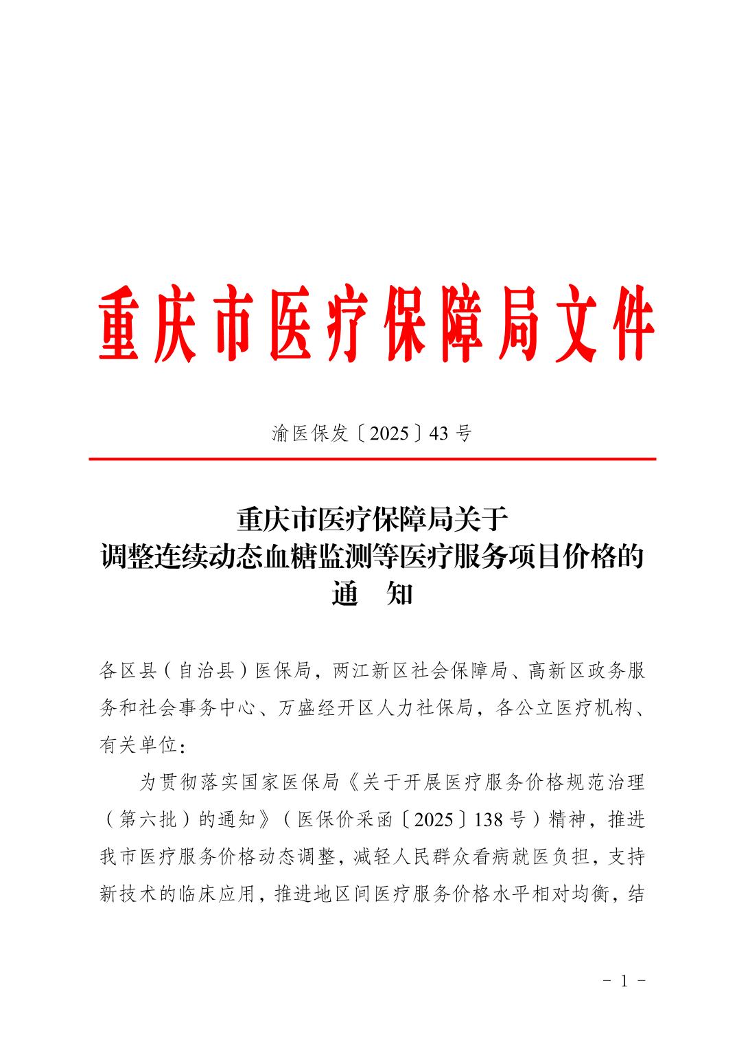 重庆市医疗保障局 关于调整连续动态血糖监测等医疗服务项目价格的通知