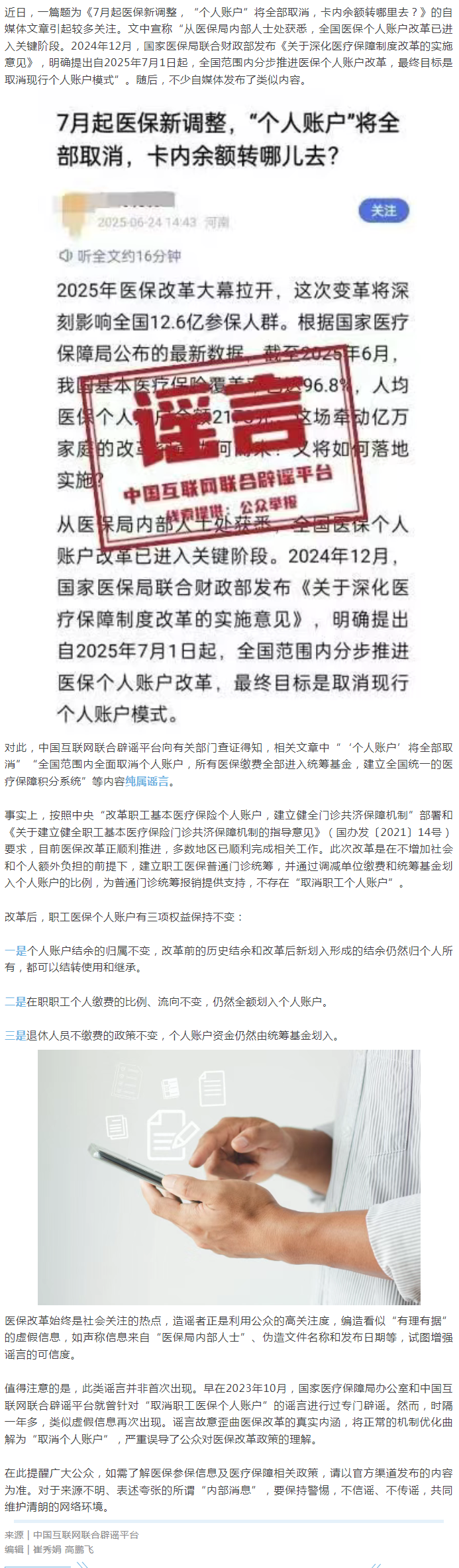 警惕!“医保‘个人账户’将全部取消”系旧谣新传